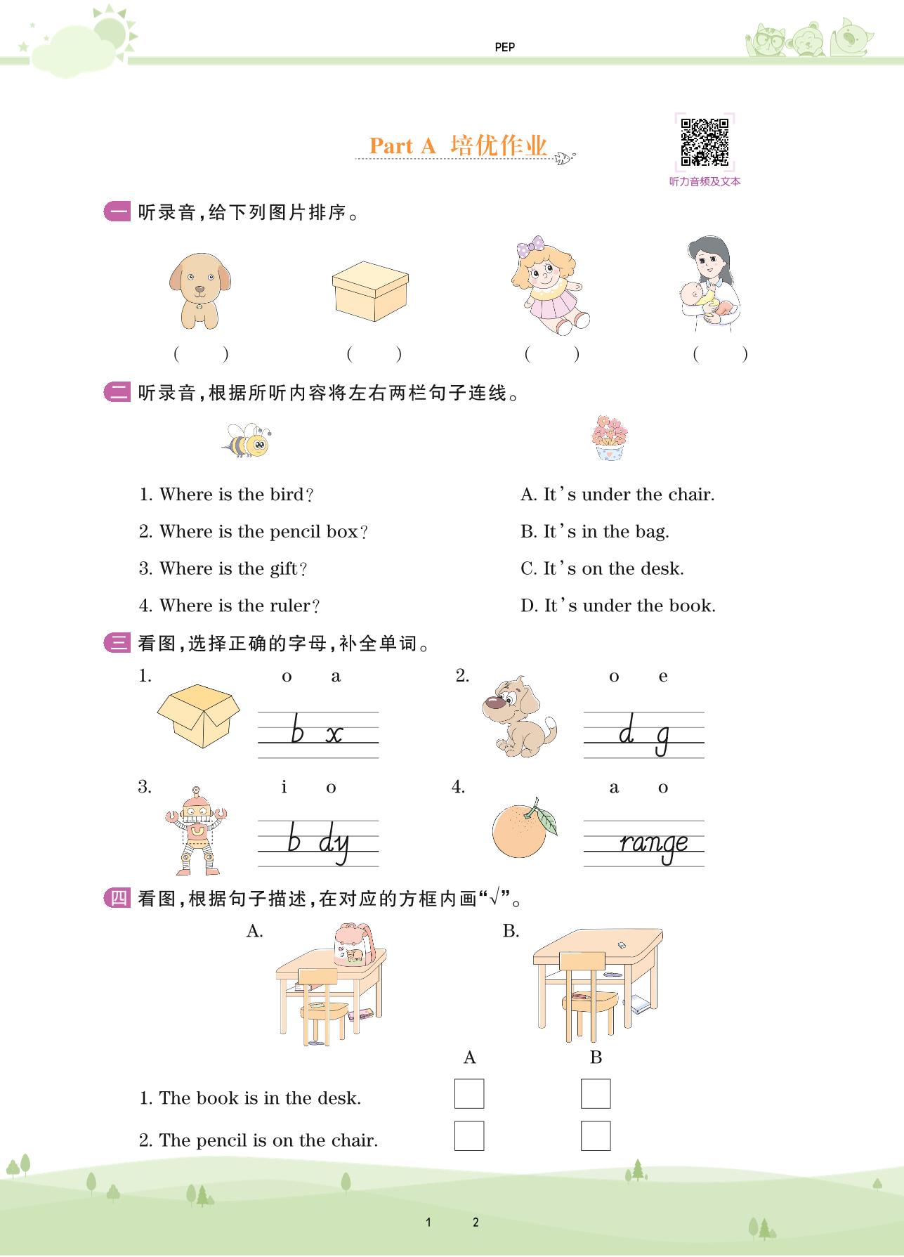 2021下册三年级英语PEP版 Unit 4 Part A 培优作业