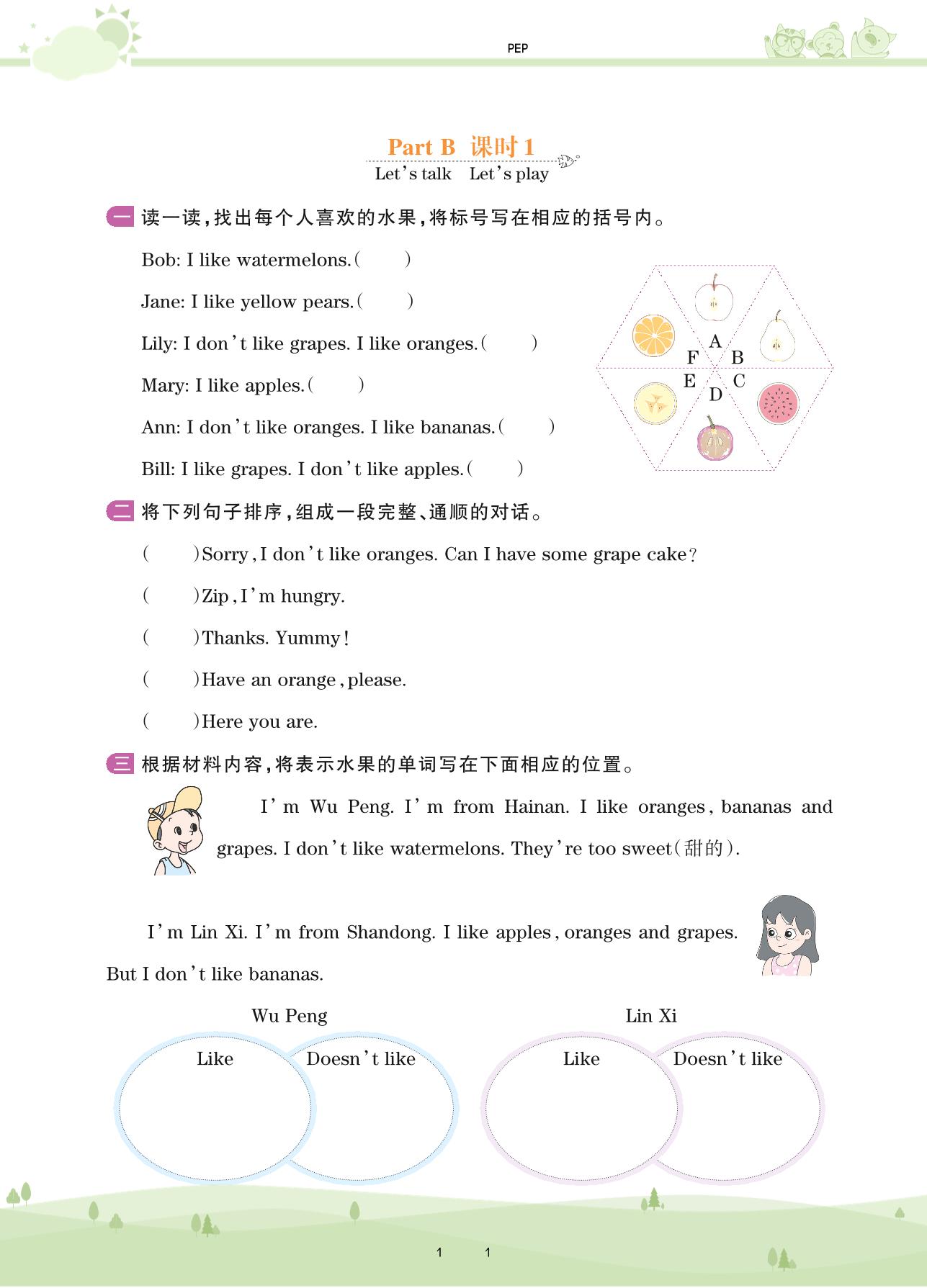 2021下册三年级英语PEP版 Unit 5 Part B—课时 1 Let’s talk Let’s play