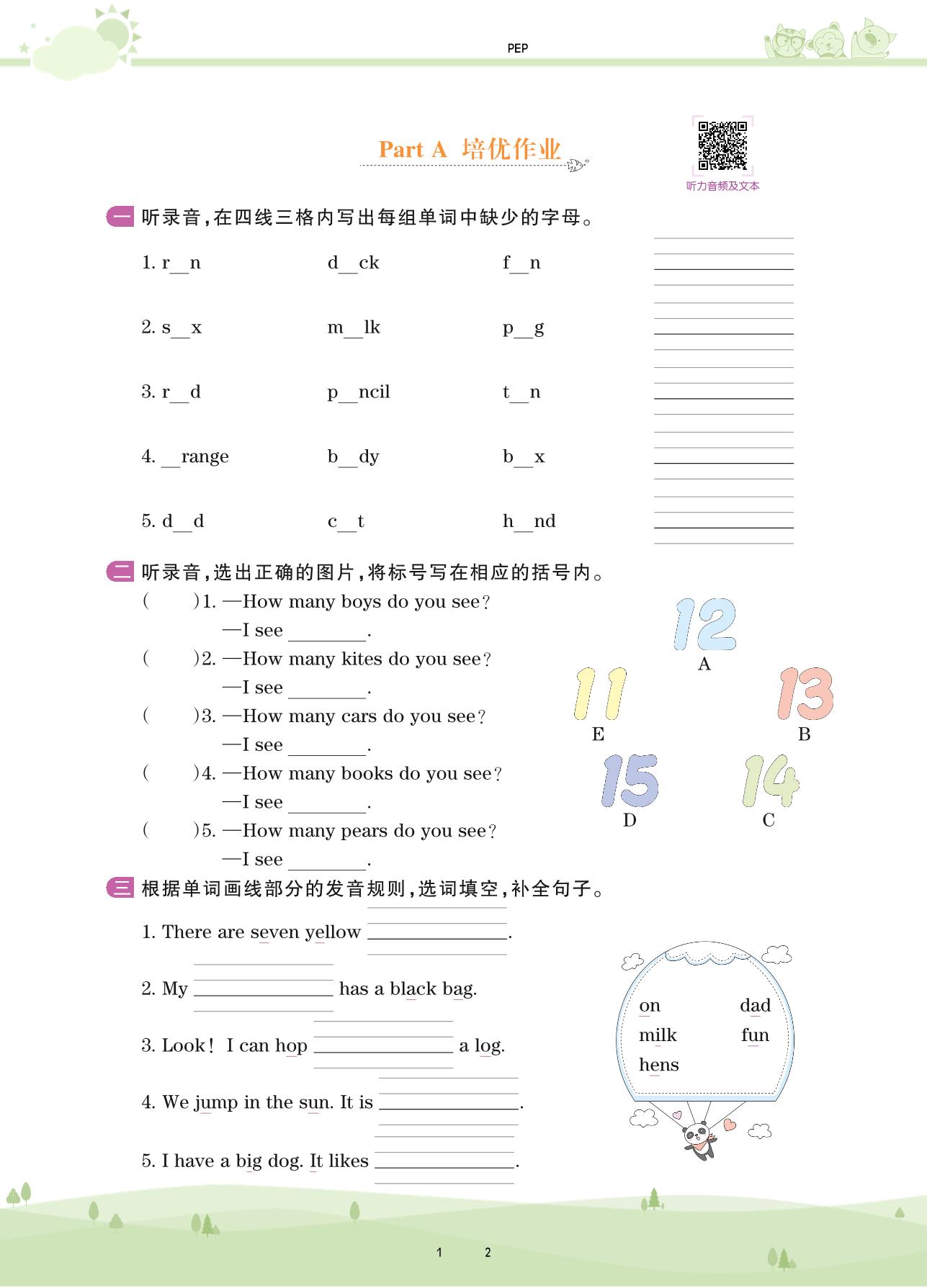 2021下册三年级英语PEP版 Unit 6 Part A 培优作业