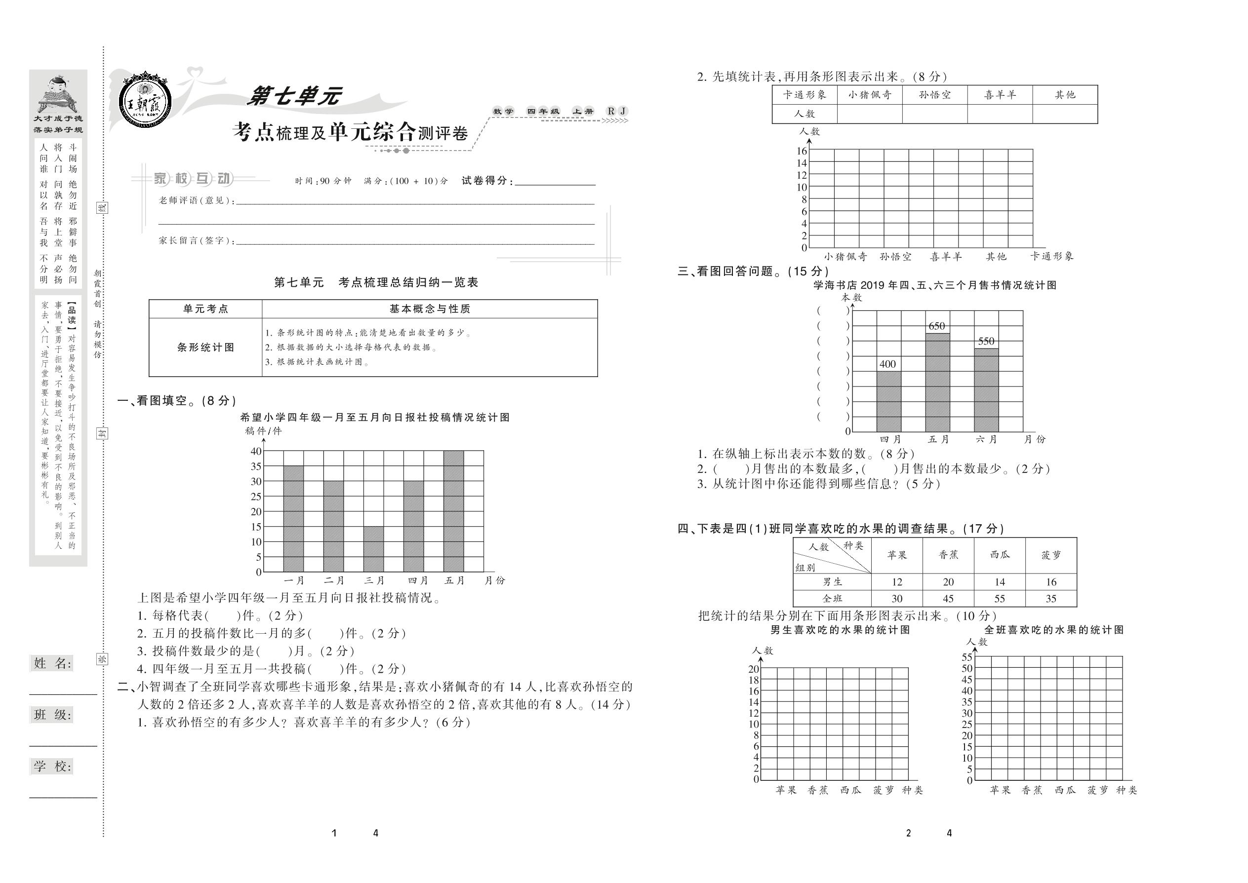 2020上册四年级数学人教版 第七单元 考点梳理及单元综合测评卷