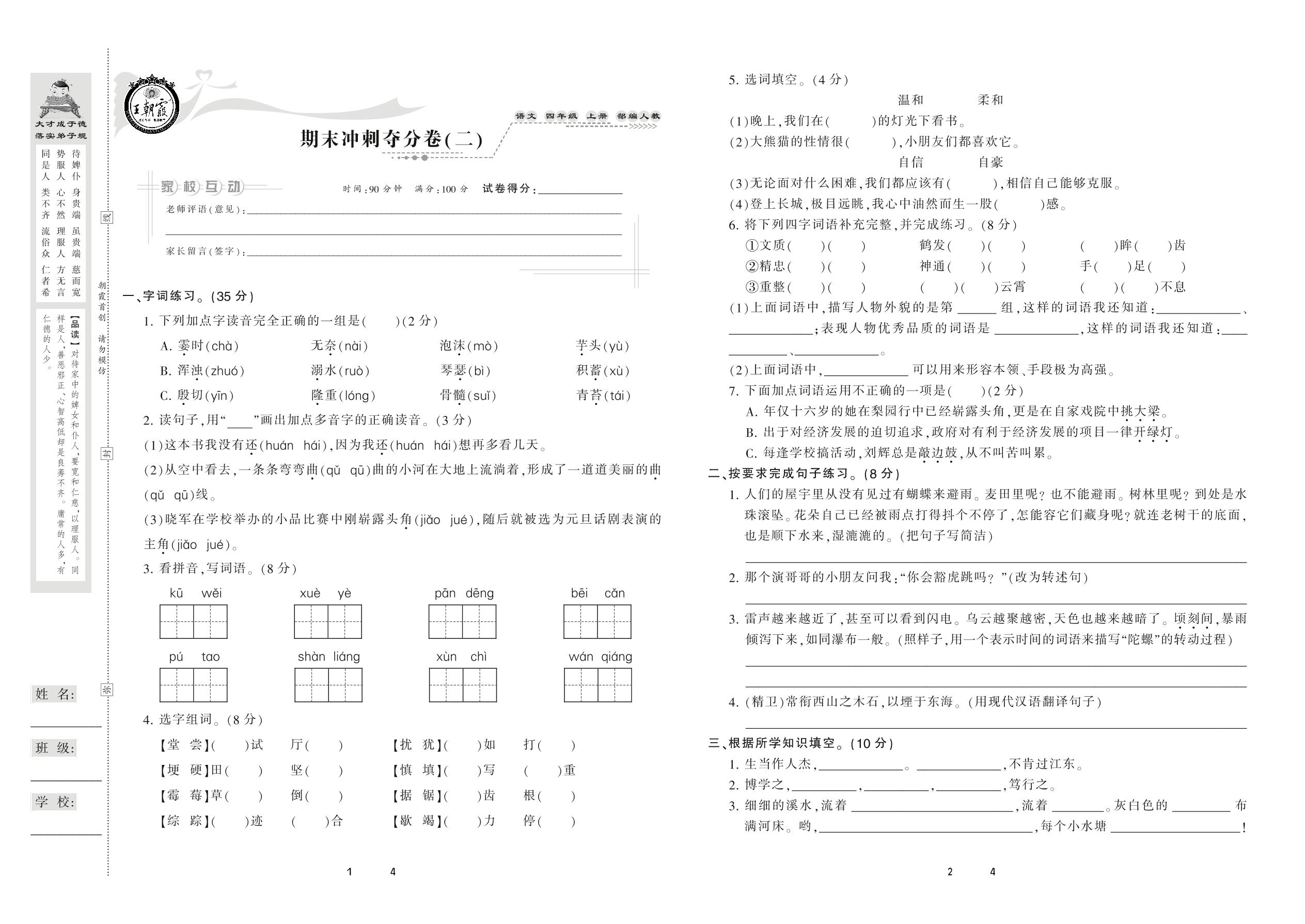 2020上册四年级语文人教版 期末冲刺夺分卷(二)