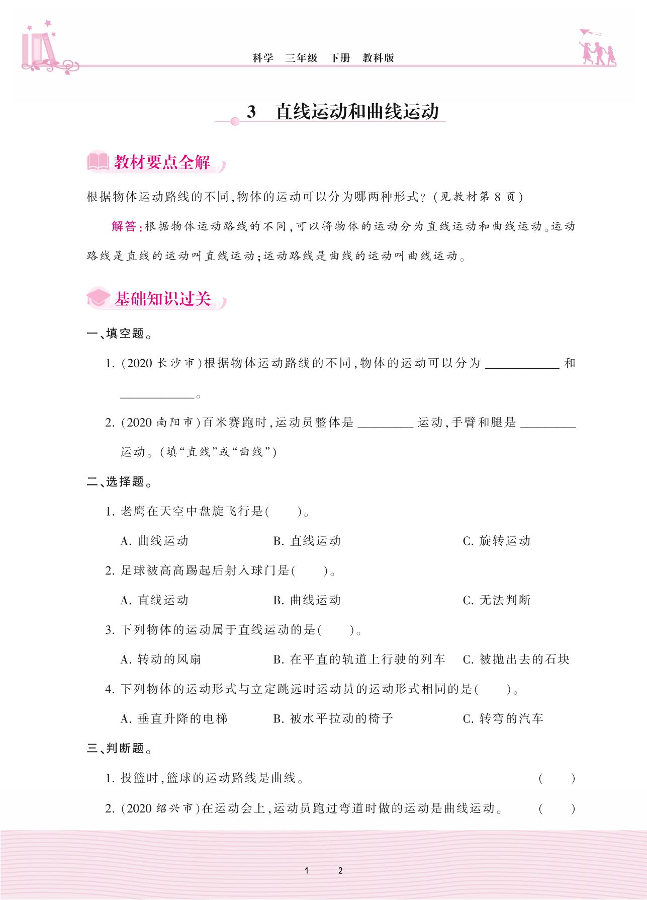 2021下册三年级科学教科版 第一单元 物体的运动——3 直线运动和曲线运动