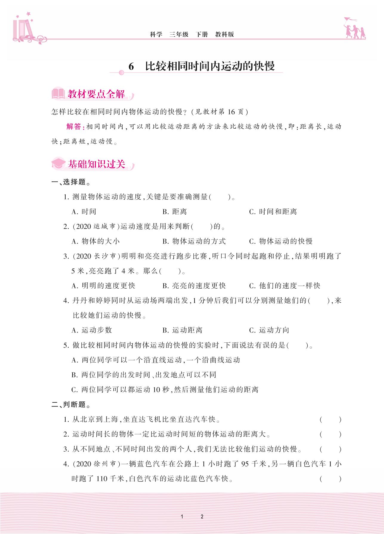 2021下册三年级科学教科版 第一单元 物体的运动——6 比较相同时间内运动的快慢
