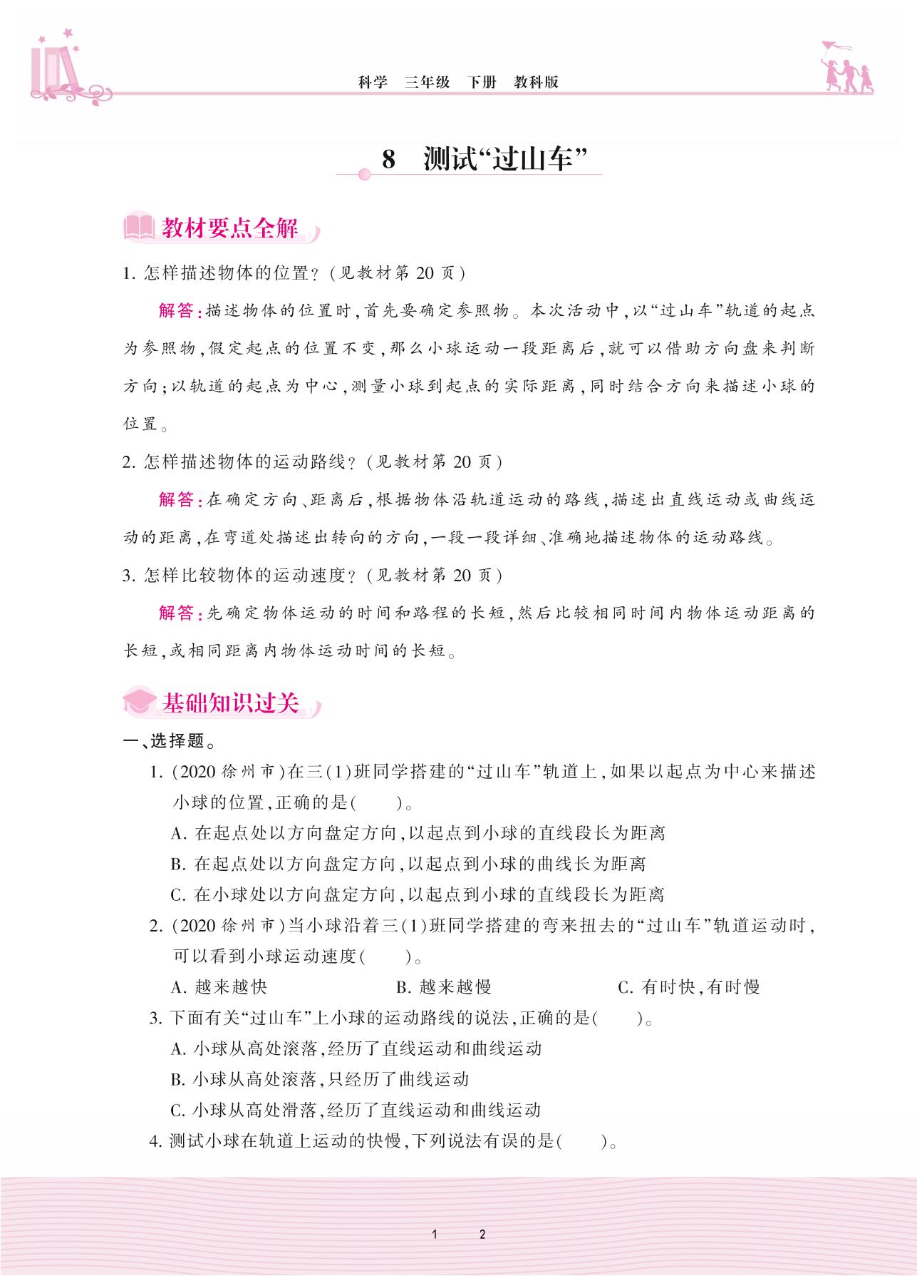 2021下册三年级科学教科版 第一单元 物体的运动——8 测试“过山车”