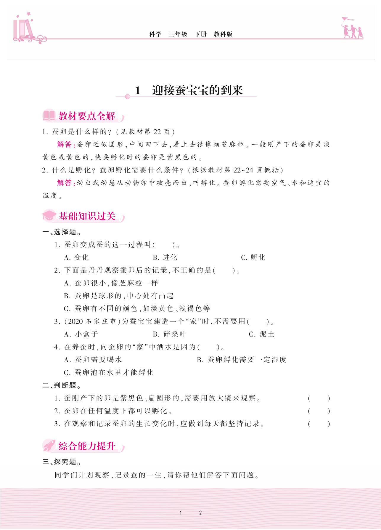 2021下册三年级科学教科版 第二单元 动物的一生——1 迎接蚕宝宝的到来