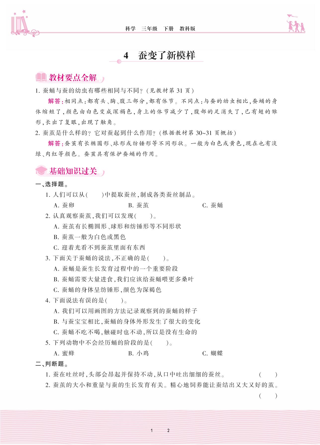 2021下册三年级科学教科版 第二单元 动物的一生——4 蚕变了新模样