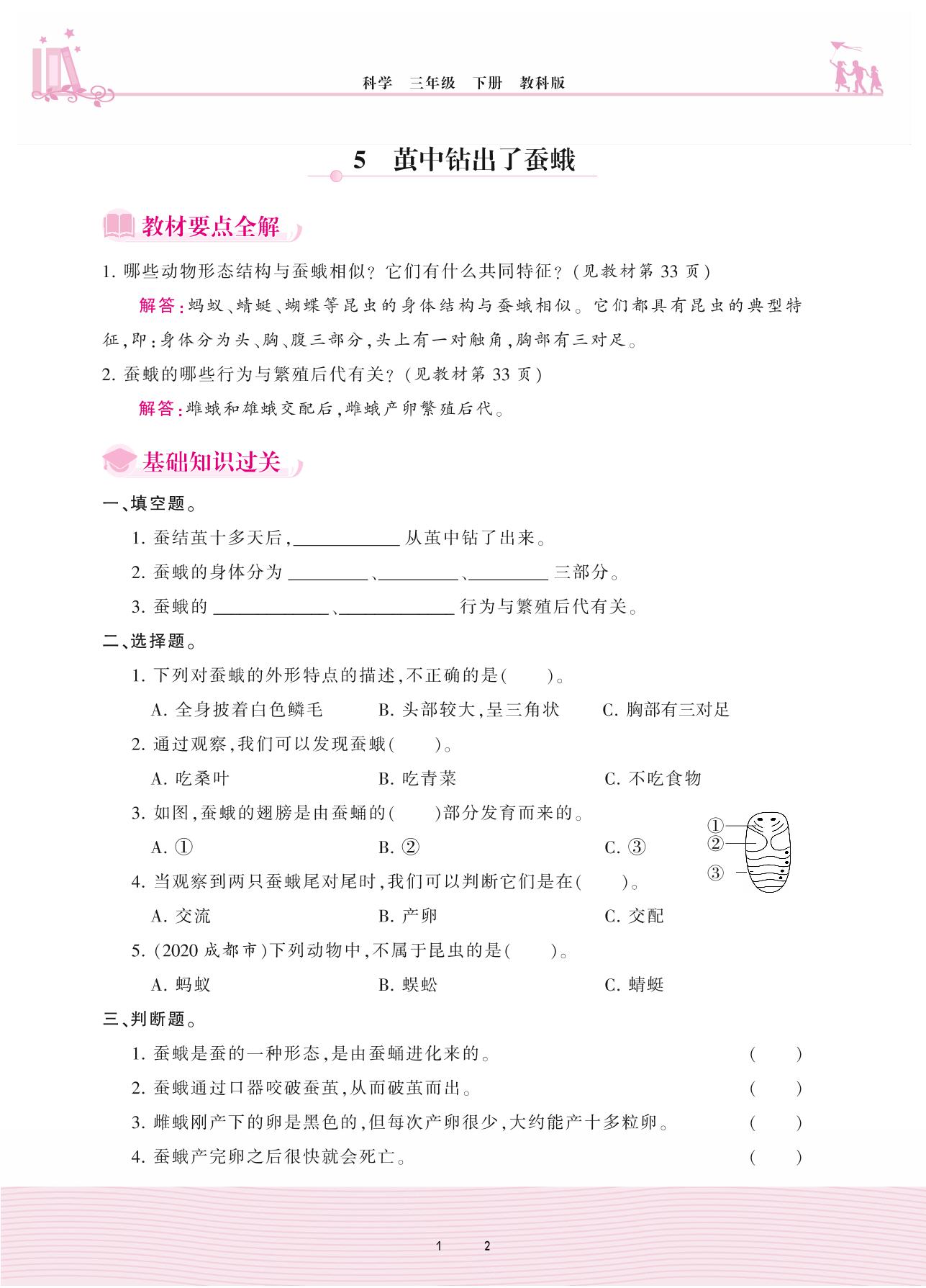2021下册三年级科学教科版 第二单元 动物的一生——5 茧中钻出了蚕蛾