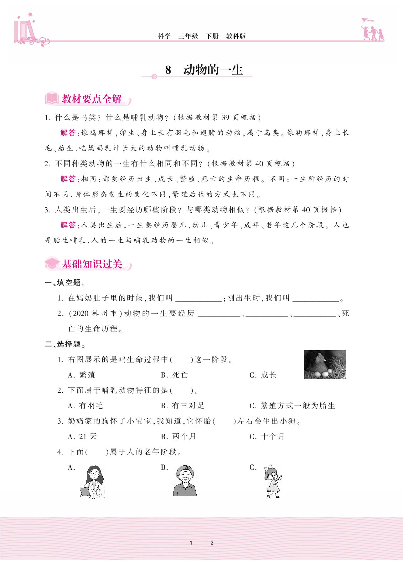 2021下册三年级科学教科版 第二单元 动物的一生——8 动物的一生