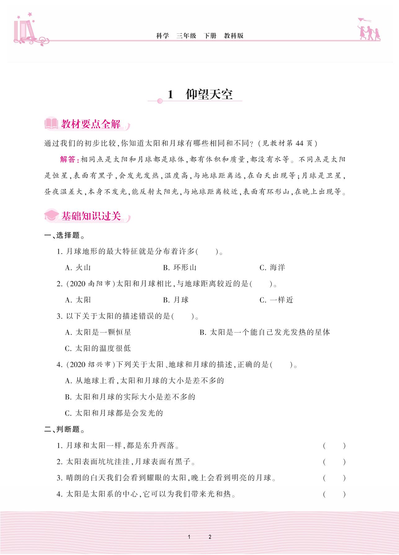 2021下册三年级科学教科版 第三单元 太阳、地球和月球——1 仰望天空