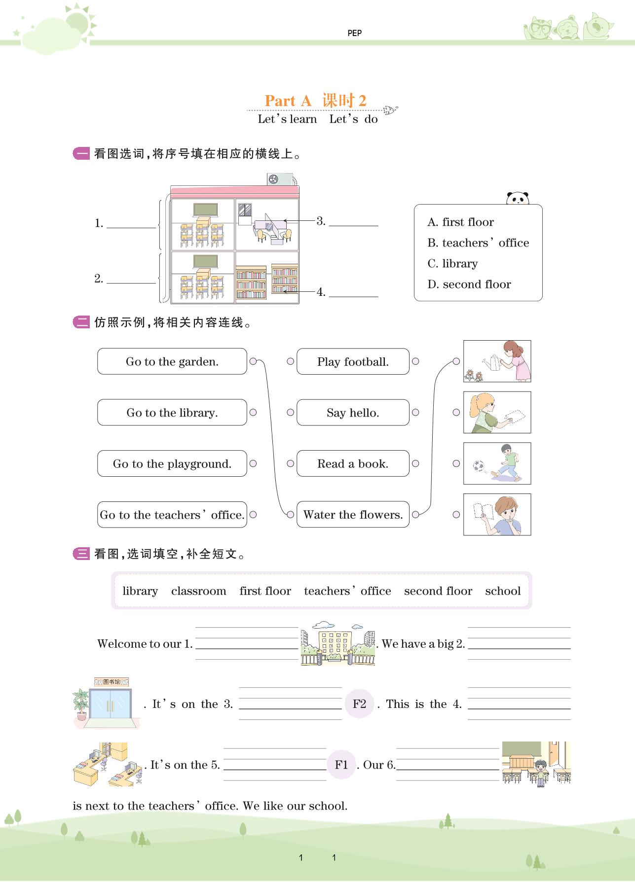 2021下册四年级英语PEP版 Unit 1 Part A—课时 2 Let’s learn Let’s do