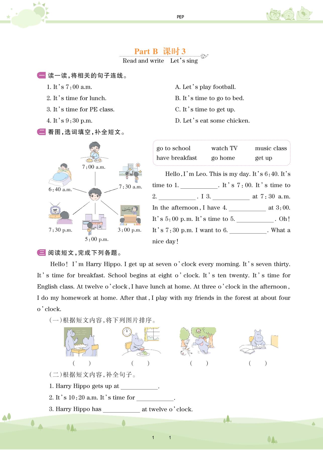 2021下册四年级英语PEP版 Unit 2 Part B—课时 3 Read and write Let’s sing