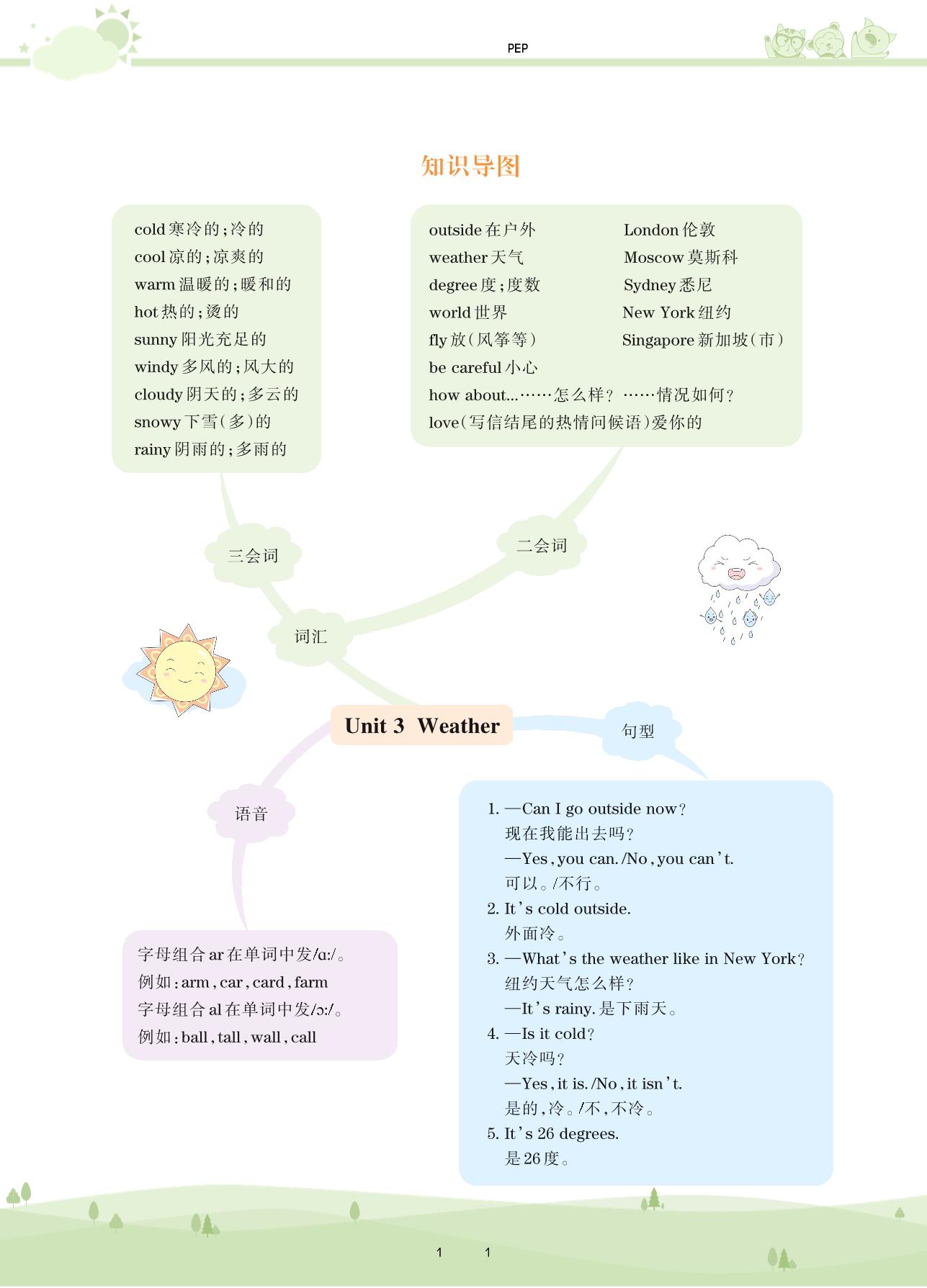2021下册四年级英语PEP版 Unit 3 知识导图