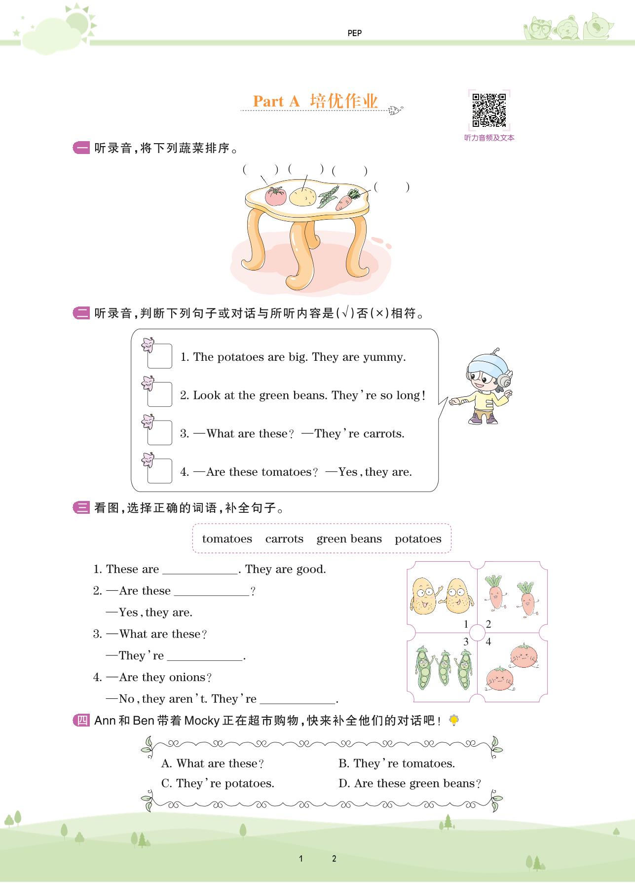 2021下册四年级英语PEP版 Unit 4 Part A 培优作业