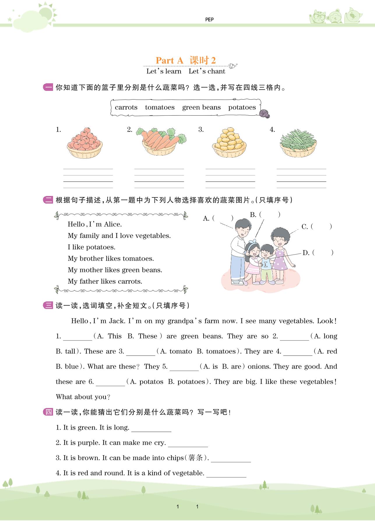 2021下册四年级英语PEP版 Unit 4 Part A—课时 2 Let’s learn Let’s chant