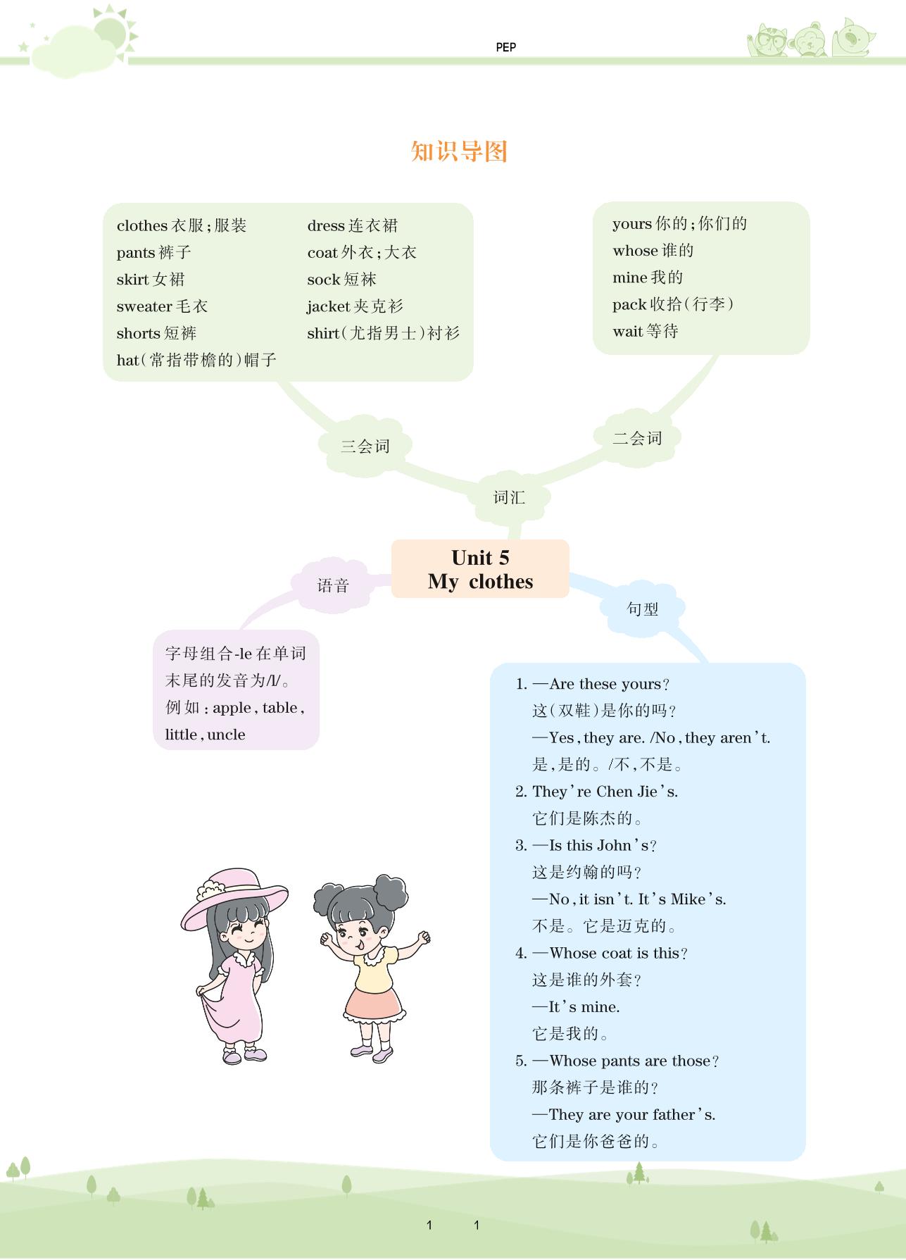 2021下册四年级英语PEP版 Unit 5 知识导图