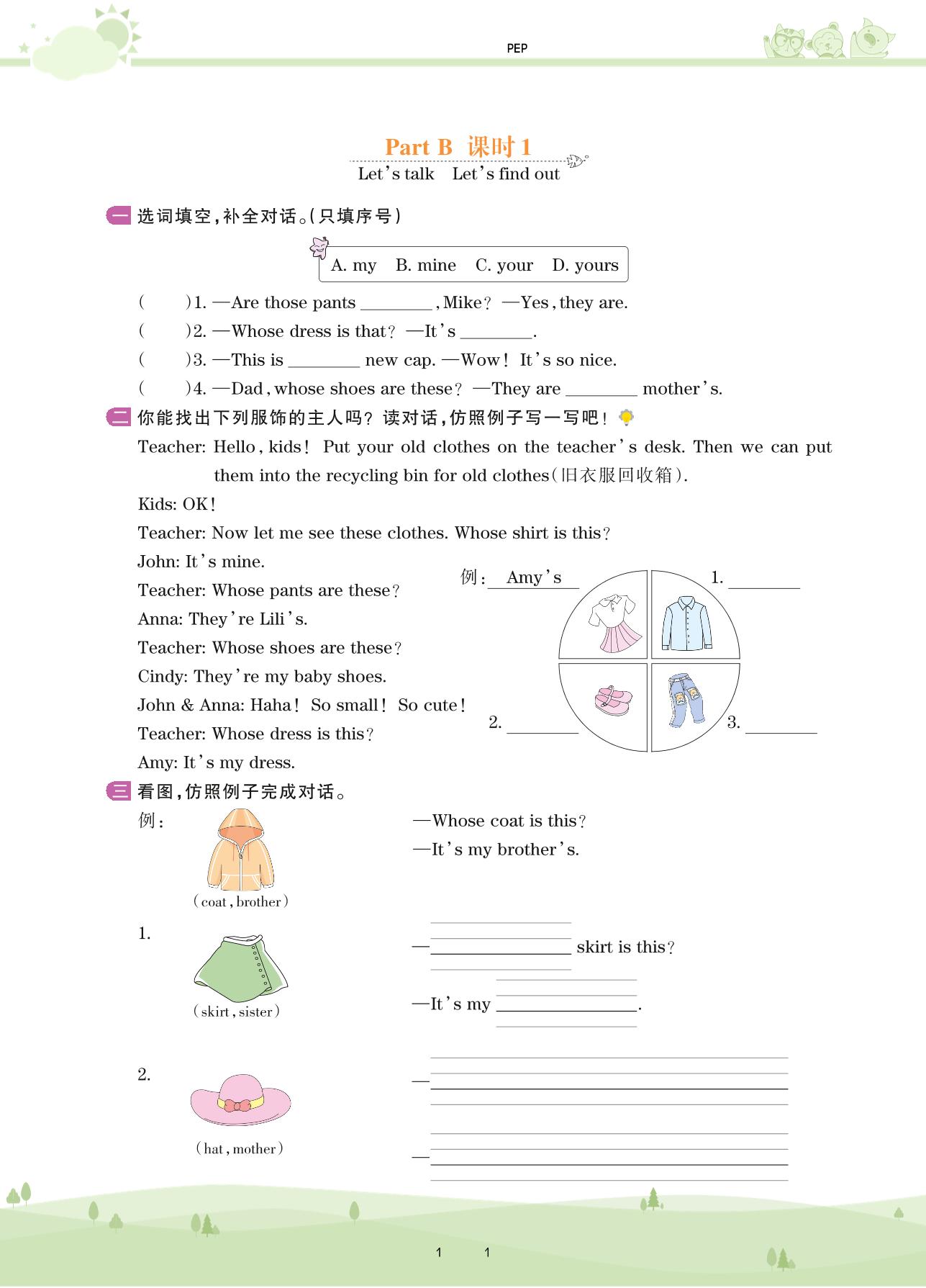 2021下册四年级英语PEP版 Unit 5 Part B—课时 1 Let’s talk Let’s find out