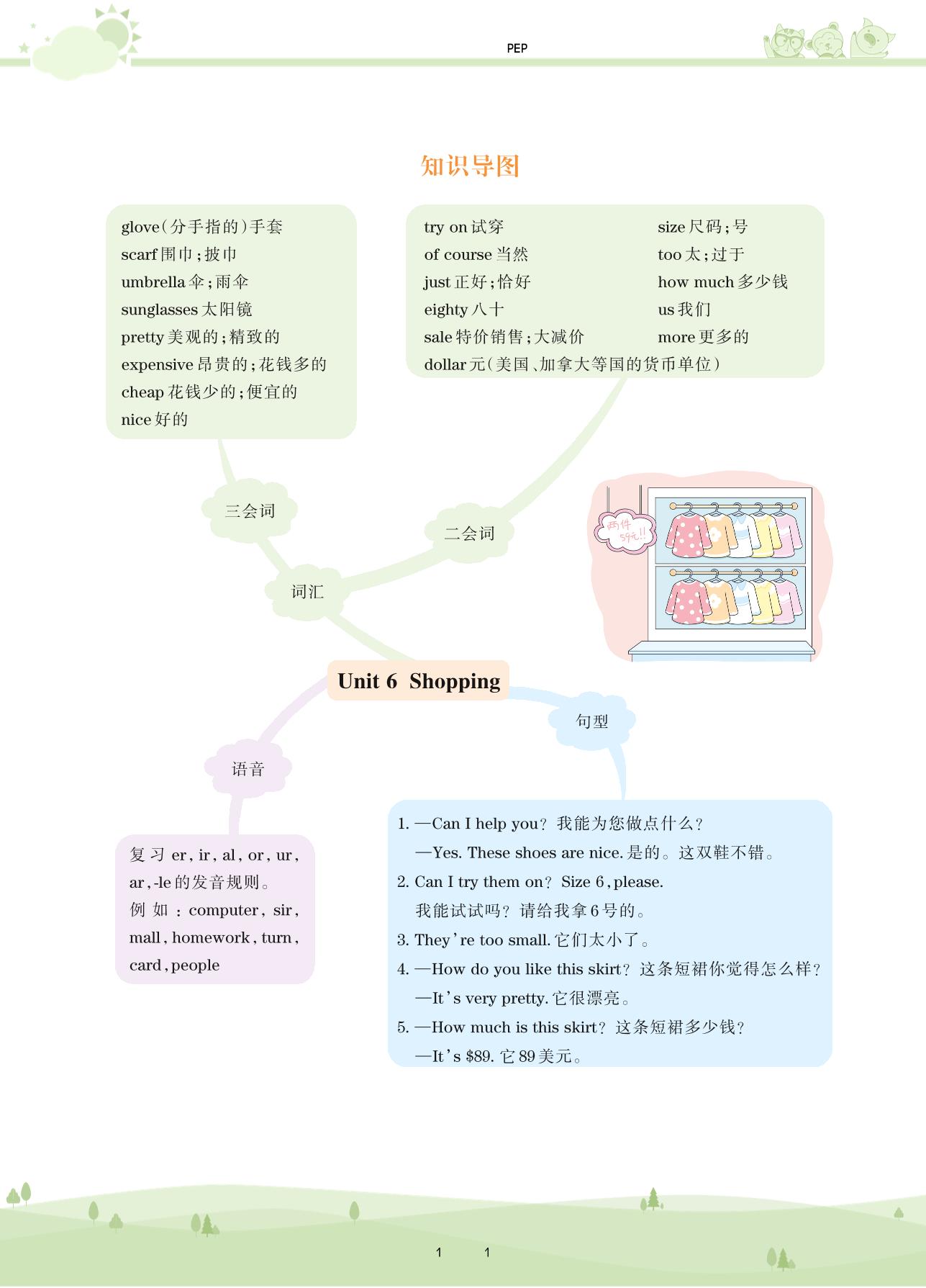 2021下册四年级英语PEP版 Unit 6 知识导图