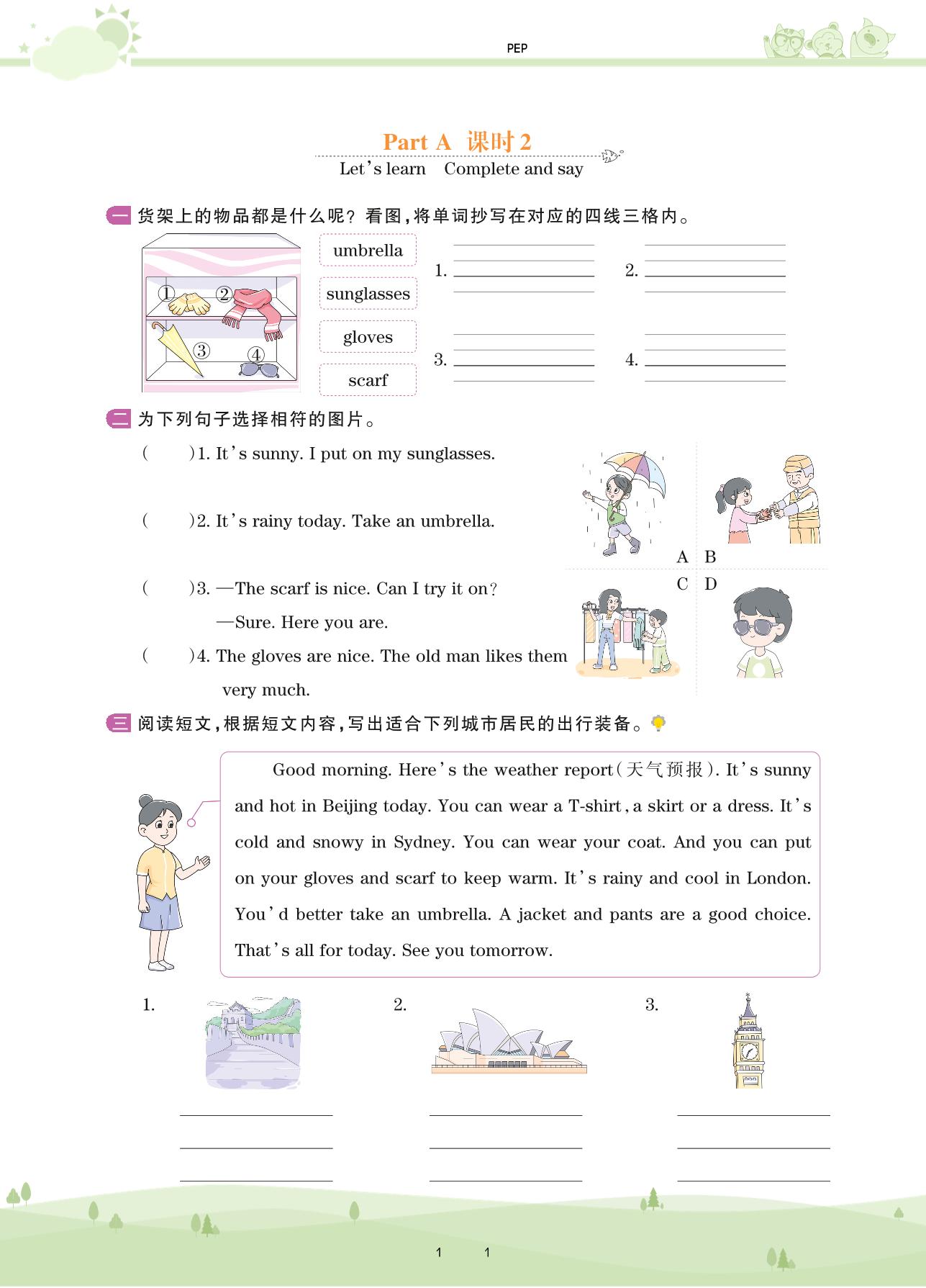 2021下册四年级英语PEP版 Unit 6 Part A—课时 2 Let’s learn Complete and say