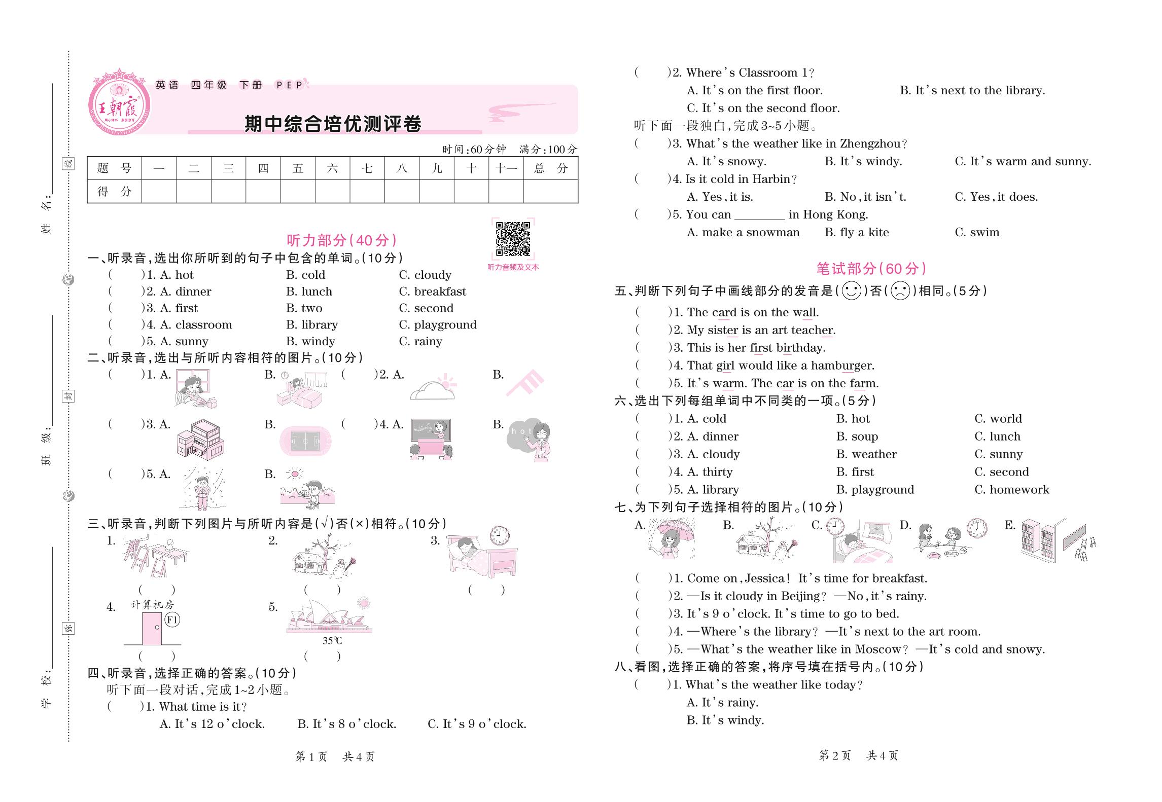 2021下册四年级英语PEP版 Unit 4 培优测评卷