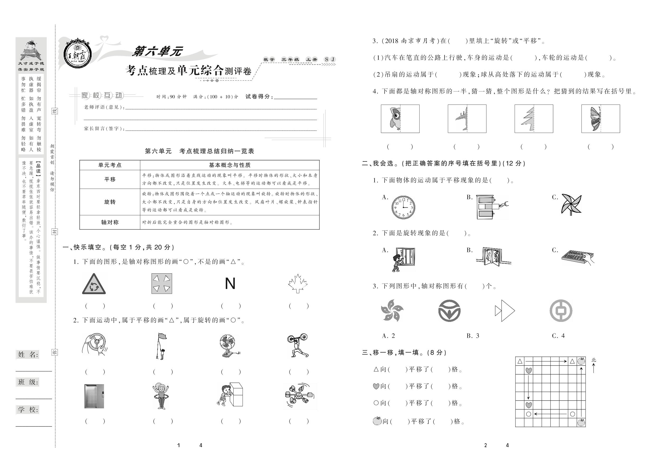 2020上册三年级数学苏教版 第六单元 考点梳理及单元综合测评卷