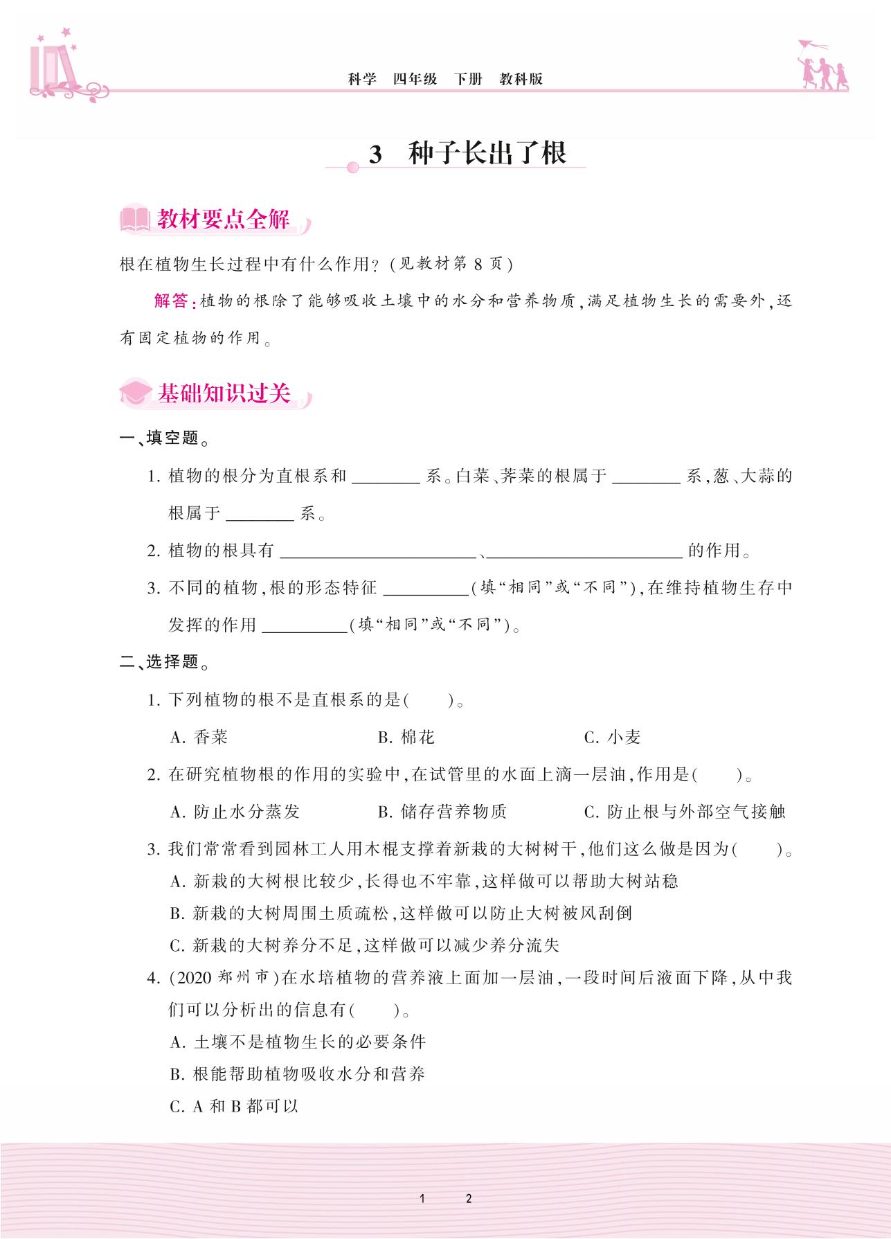2021下册四年级科学教科版 第一单元 植物的生长变化——3 种子长出了根