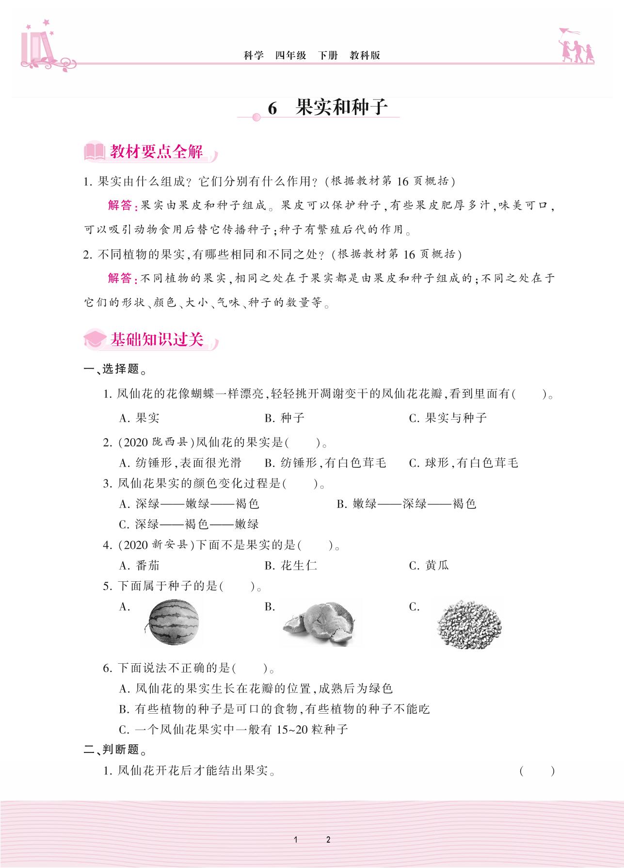 2021下册四年级科学教科版 第一单元 植物的生长变化——6 果实和种子