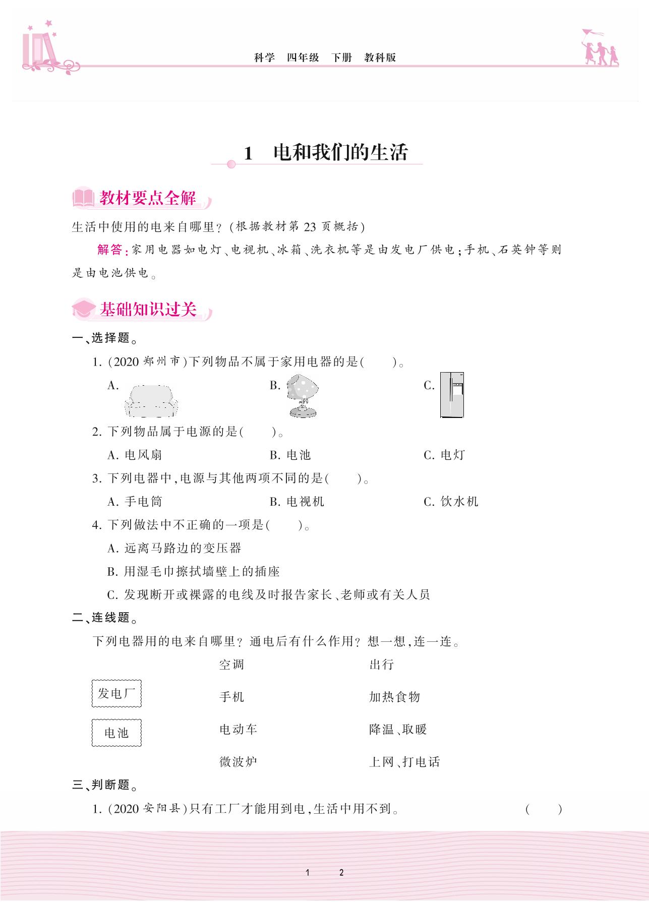 2021下册四年级科学教科版 第二单元 电路——1 电和我们的生活