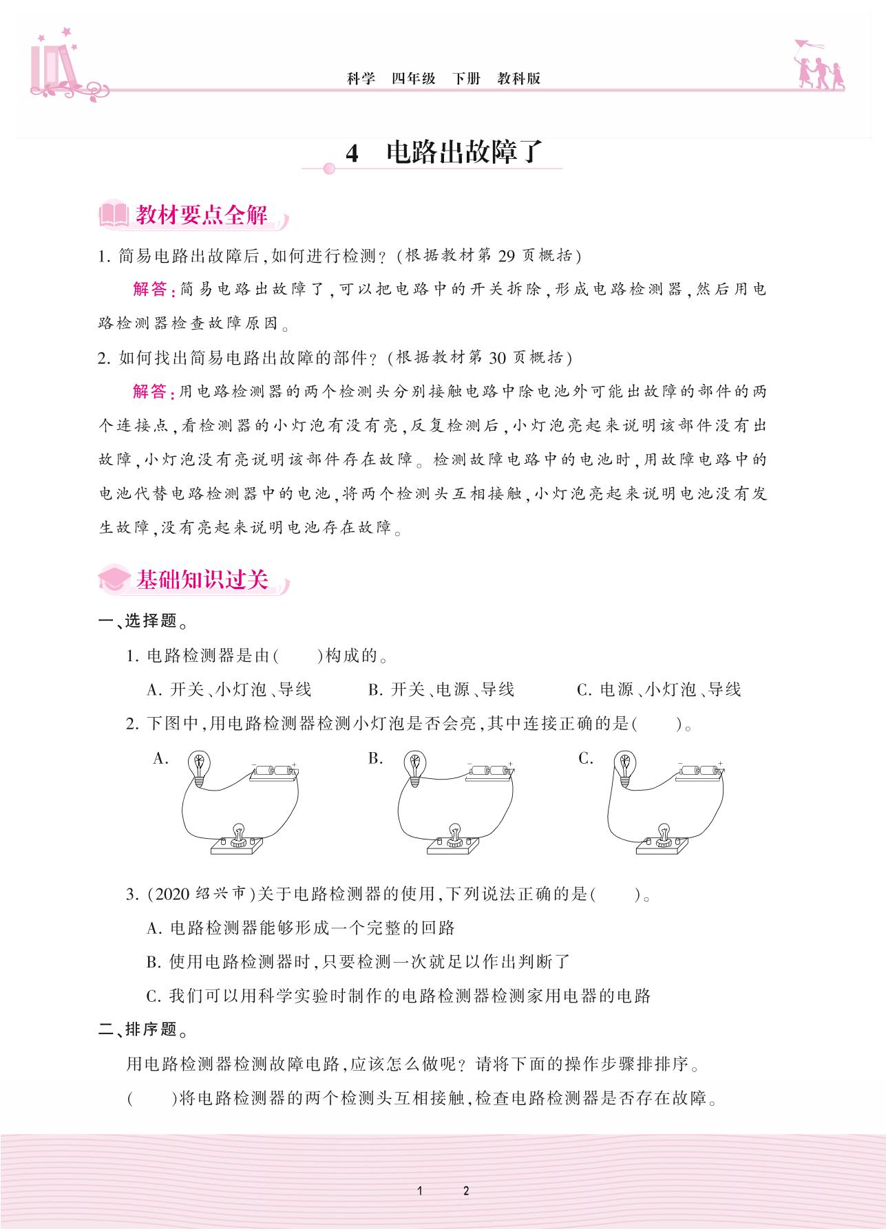 2021下册四年级科学教科版 第二单元 电路——4 电路出故障了