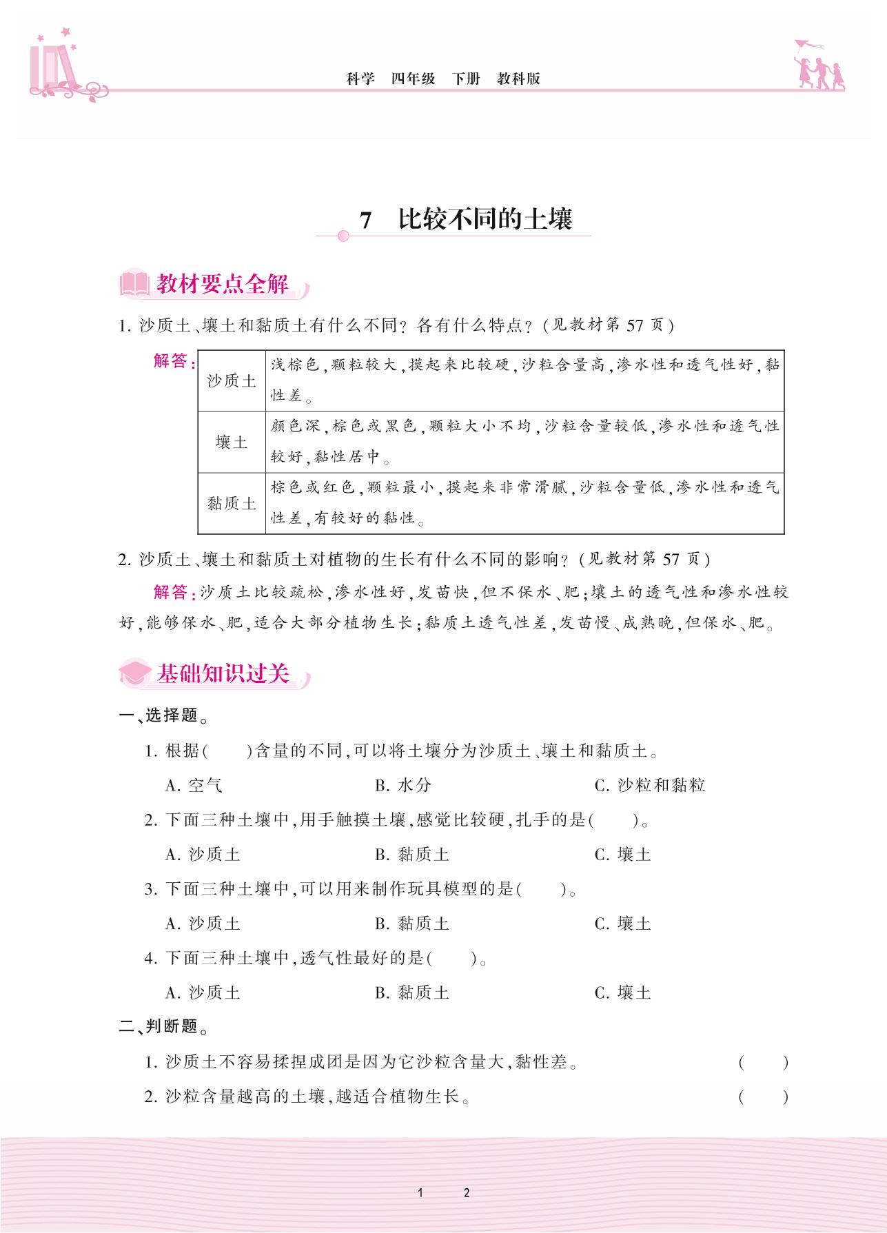 2021下册四年级科学教科版 第三单元 岩石与土壤——7 比较不同的土壤