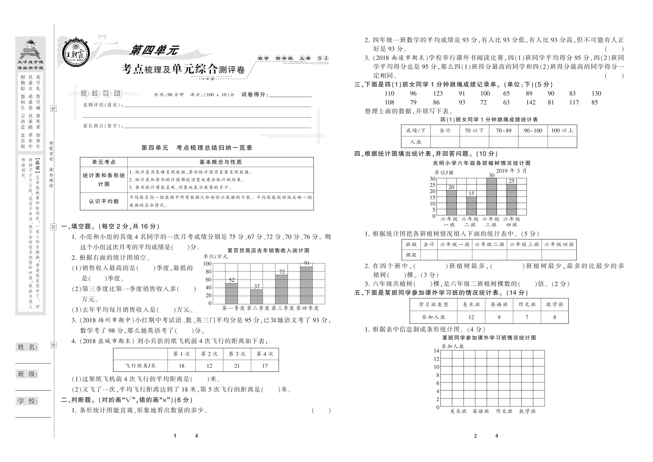 2020上册三年级数学苏教版 第四单元 考点梳理及单元综合测评卷