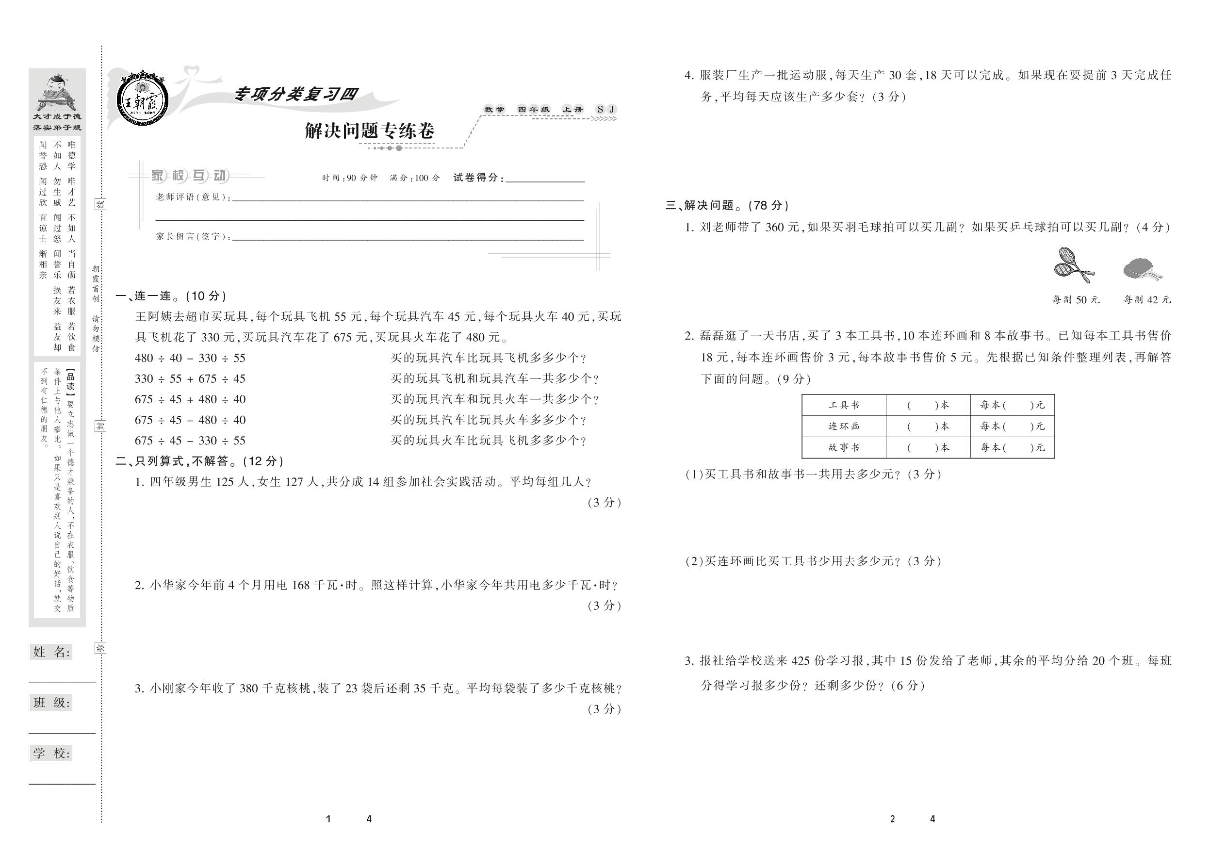 2020上册三年级数学苏教版 解决问题专练卷_R210922173105960