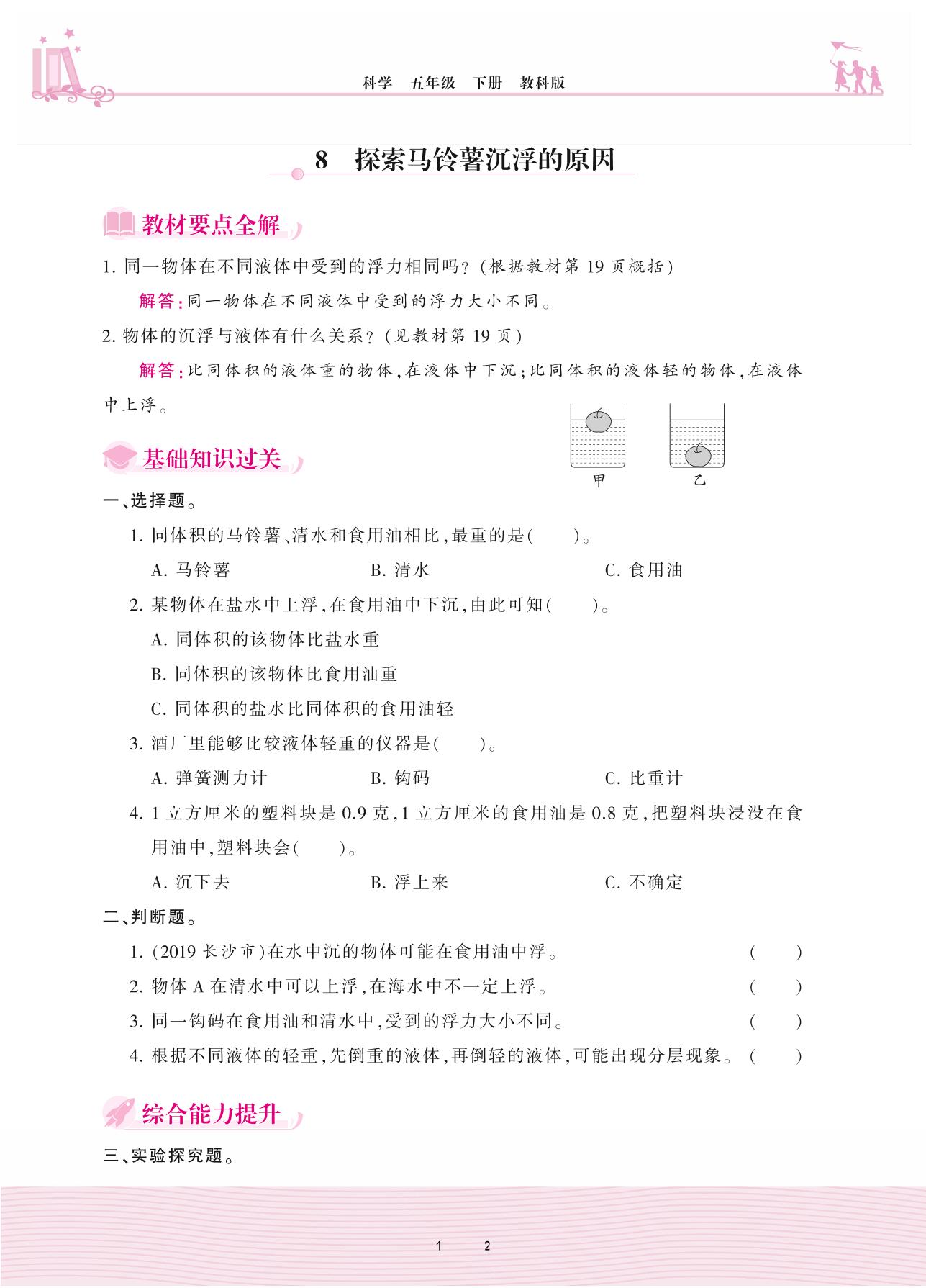 2021下册五年级科学教科版 第一单元 沉和浮——8 探索马铃薯沉浮的原因