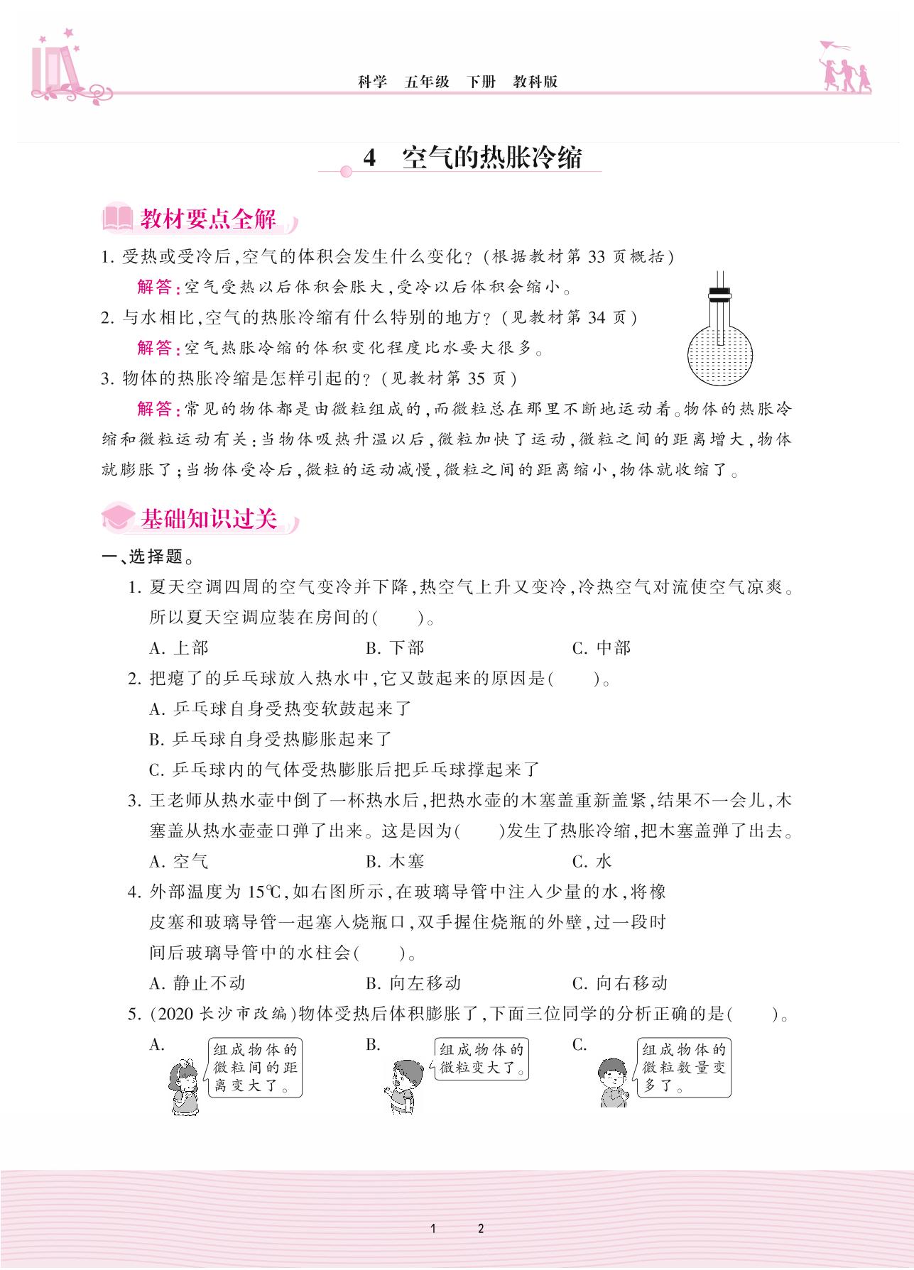 2021下册五年级科学教科版 第二单元 热——4 空气的热胀冷缩