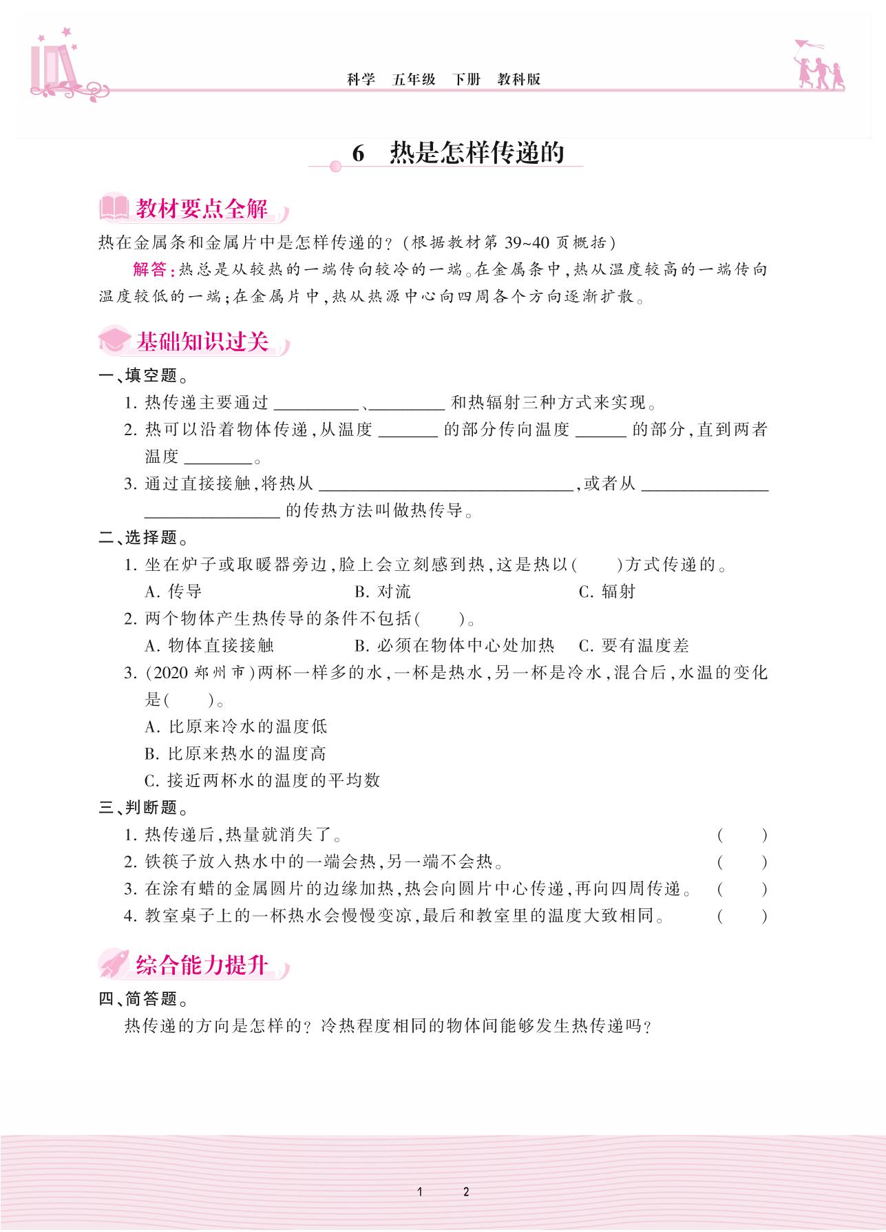 2021下册五年级科学教科版 第二单元 热——6 热是怎样传递的