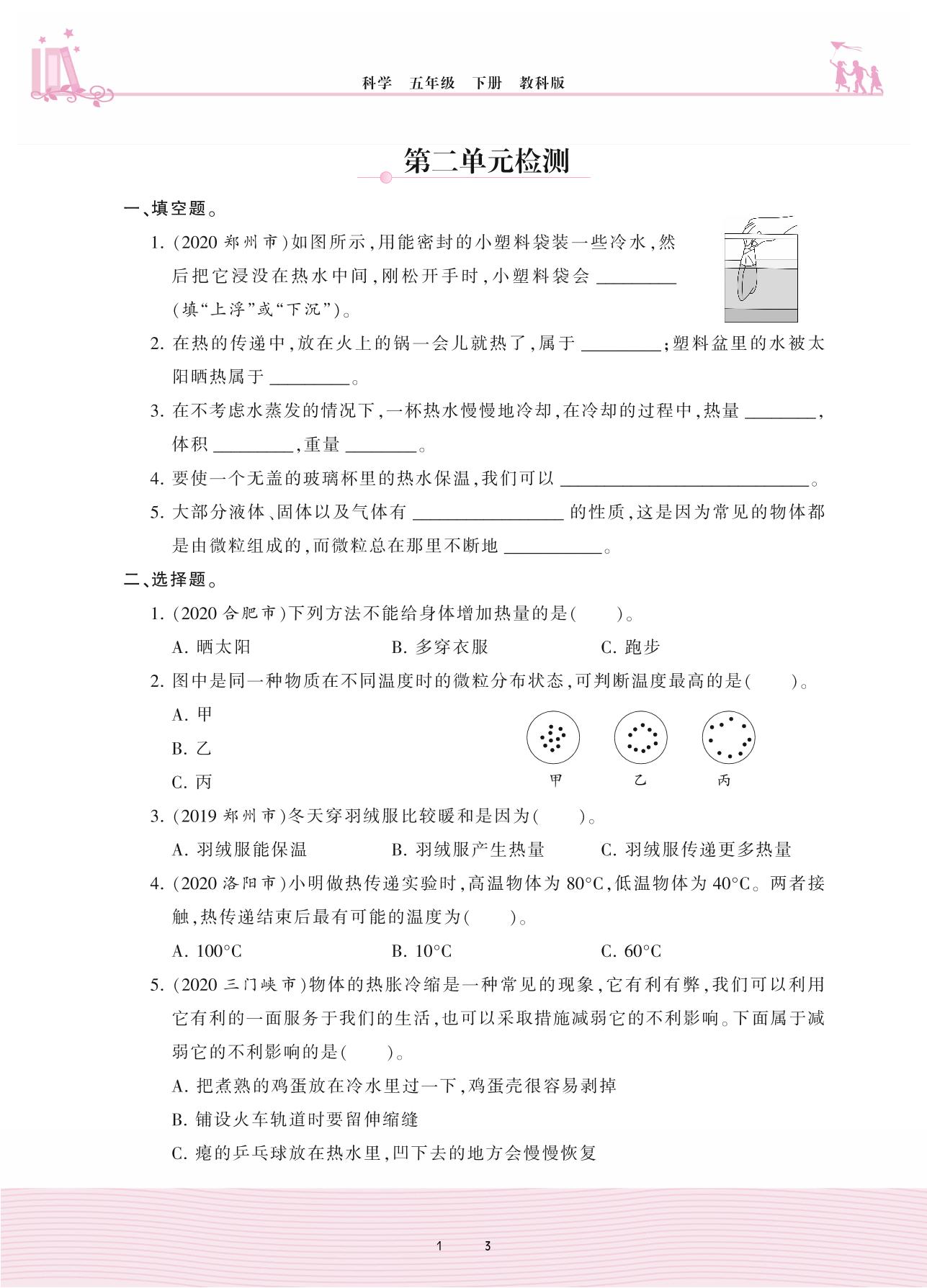 2021下册五年级科学教科版 第二单元 热——第二单元检测