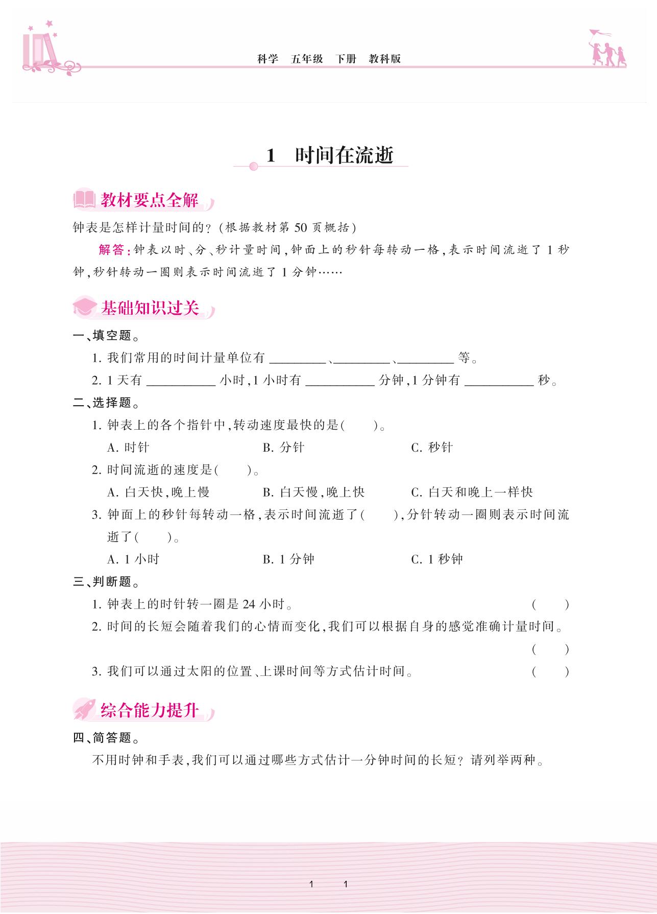 2021下册五年级科学教科版 第三单元 时间的测量——1 时间在流逝