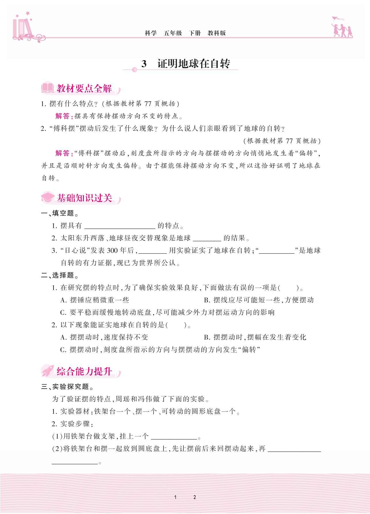 2021下册五年级科学教科版 第四单元 地球的运动——3 证明地球在自转