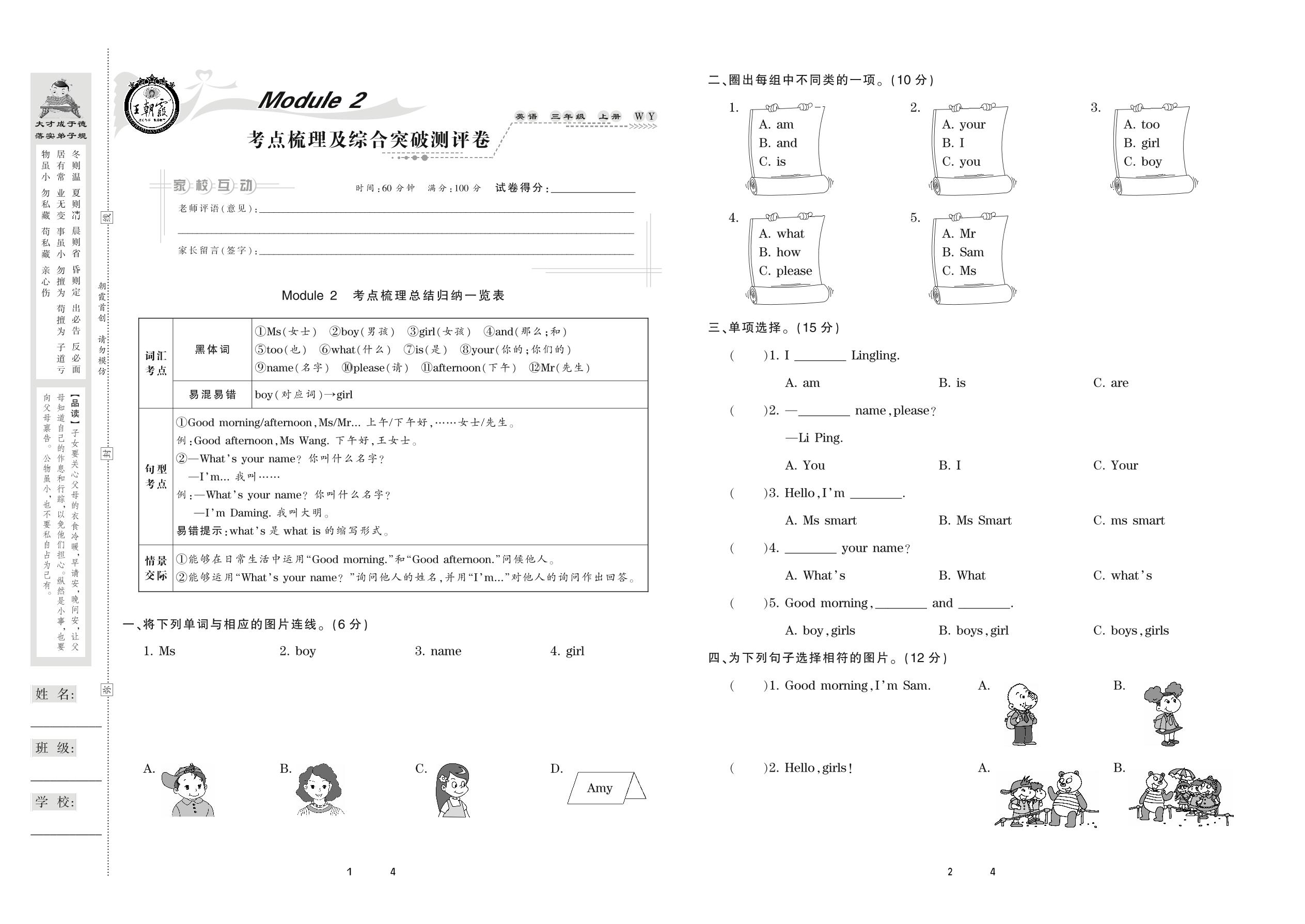 2020上册三年级英语外研版 Module 2 考点梳理及综合突破测评卷