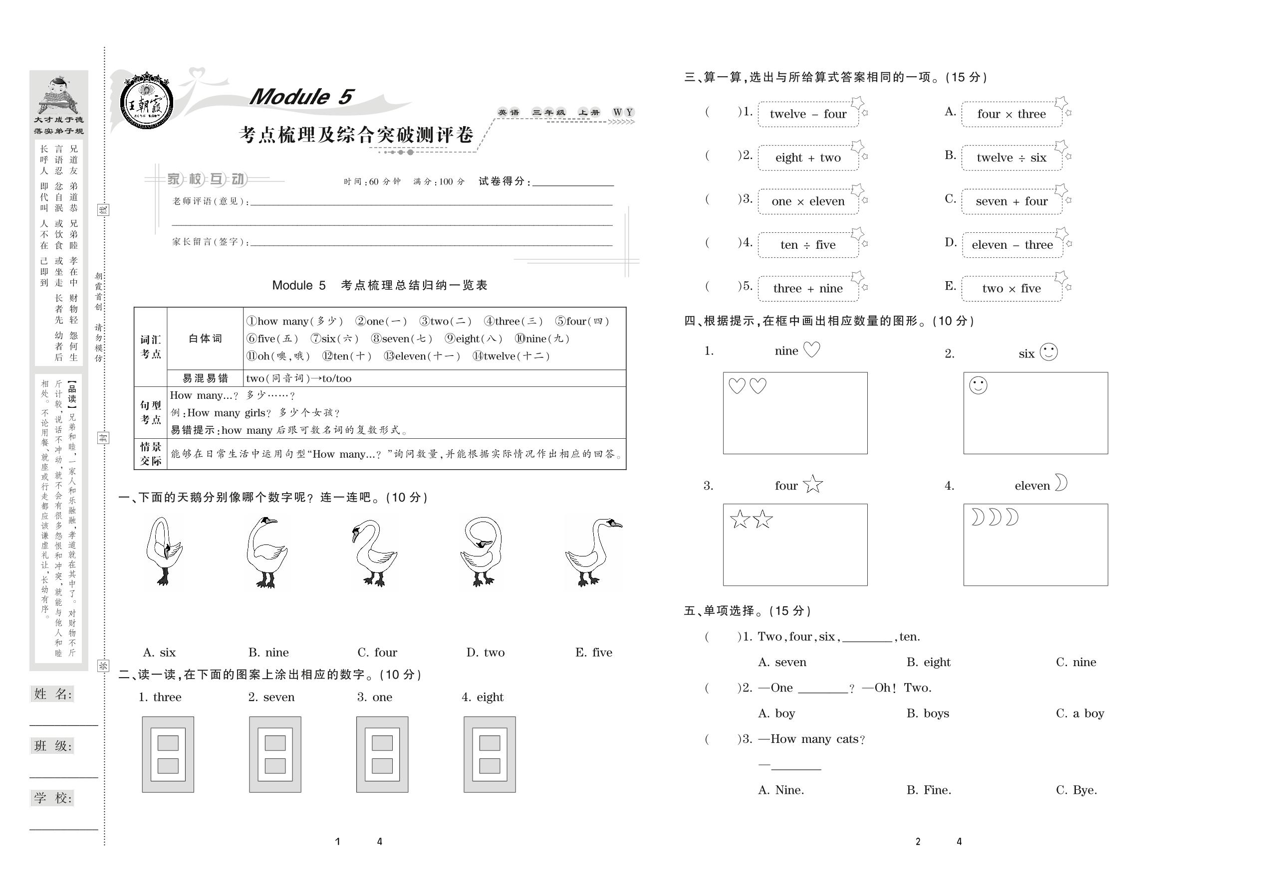 2020上册三年级英语外研版 Module 5 考点梳理及综合突破测评卷