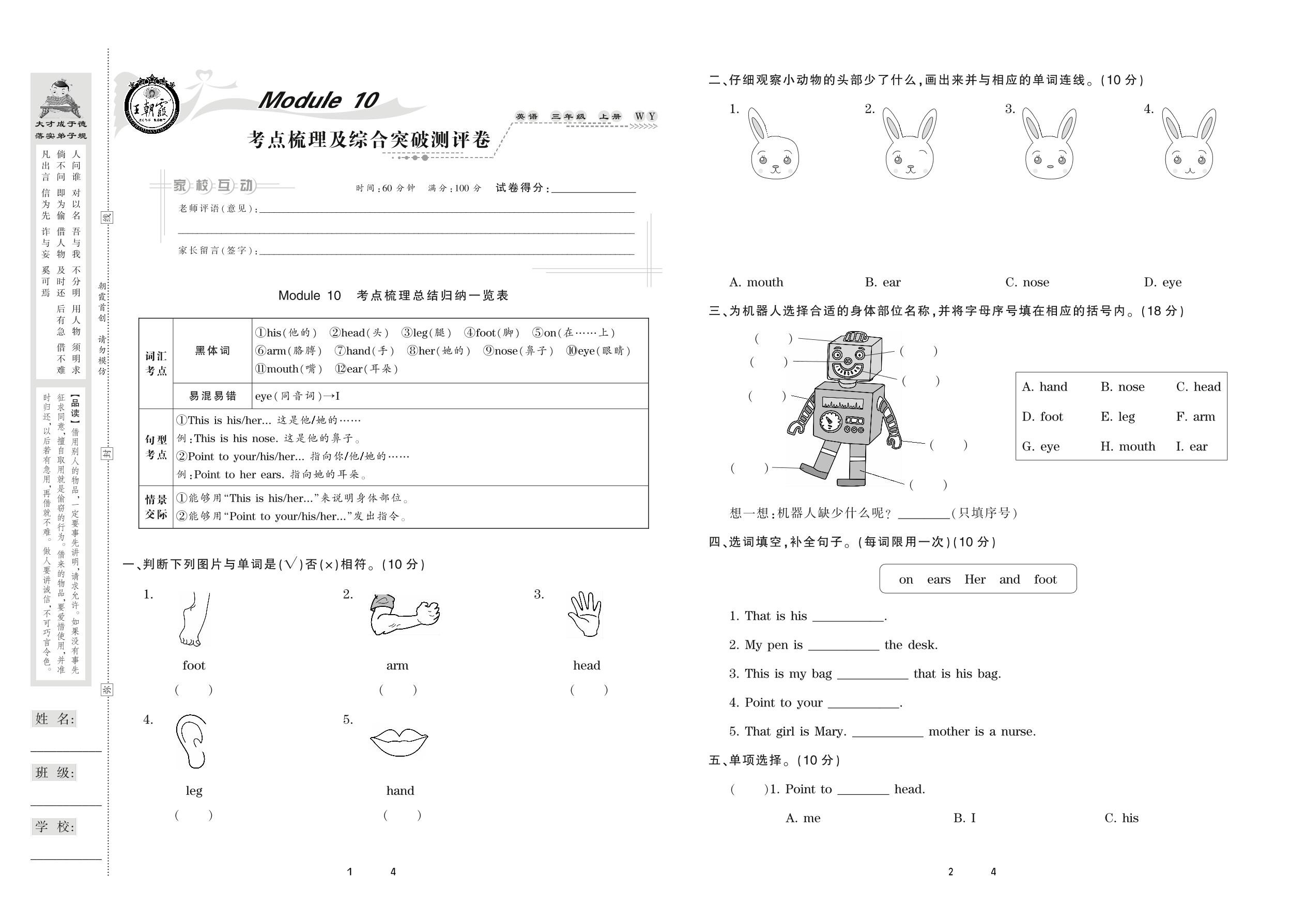 2020上册三年级英语外研版 Module 10 考点梳理及综合突破测评卷