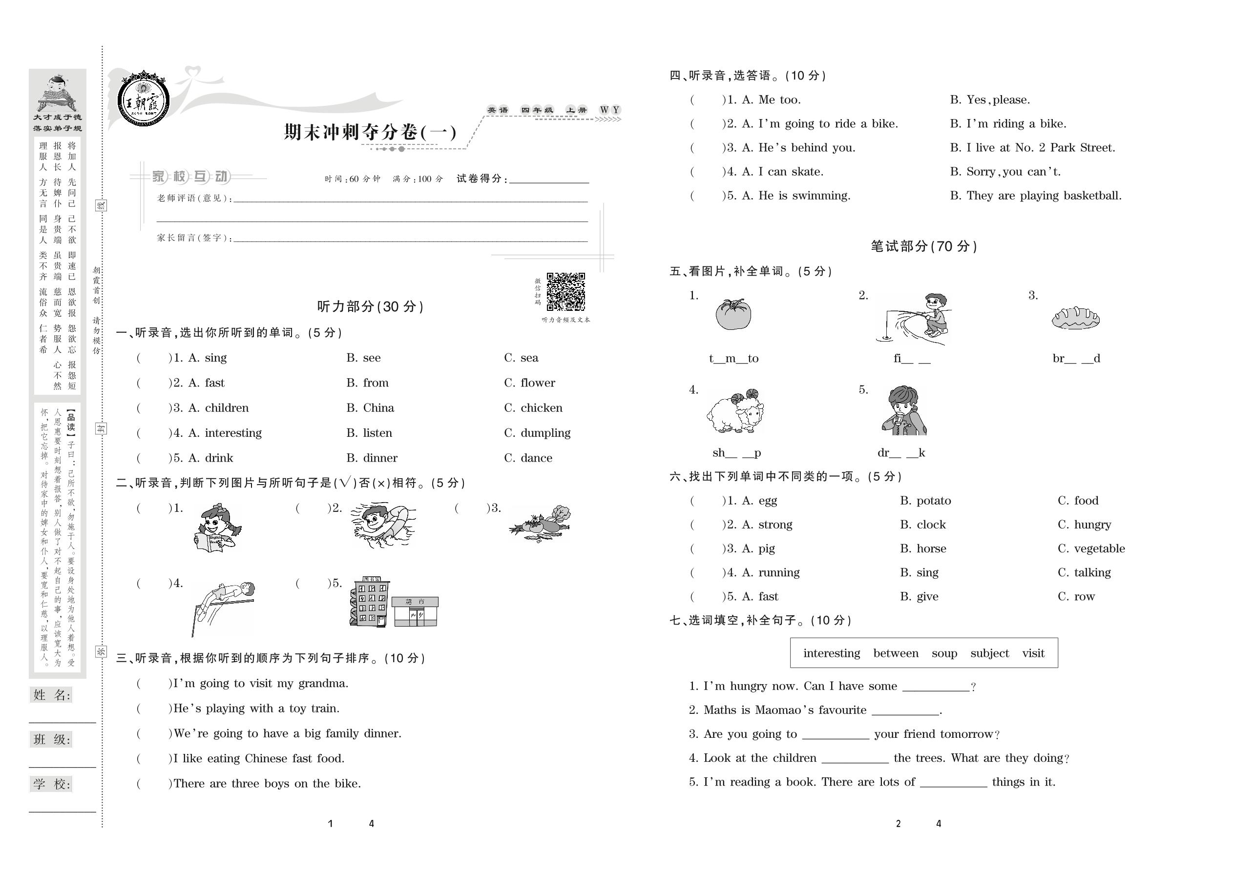 2020上册四年级英语外研版 期末冲刺夺分卷(一)