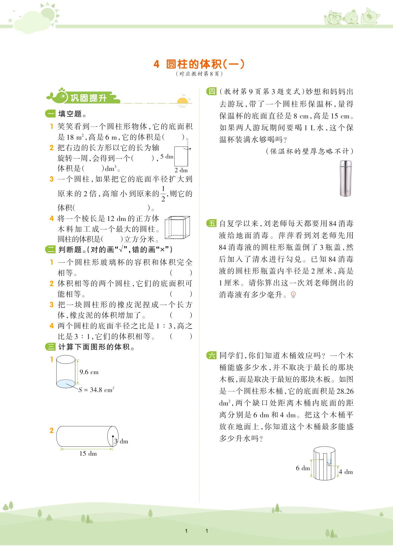 2021下册六年级数学北师版 第一单元 圆柱和圆锥——4 圆柱的体积(一)
