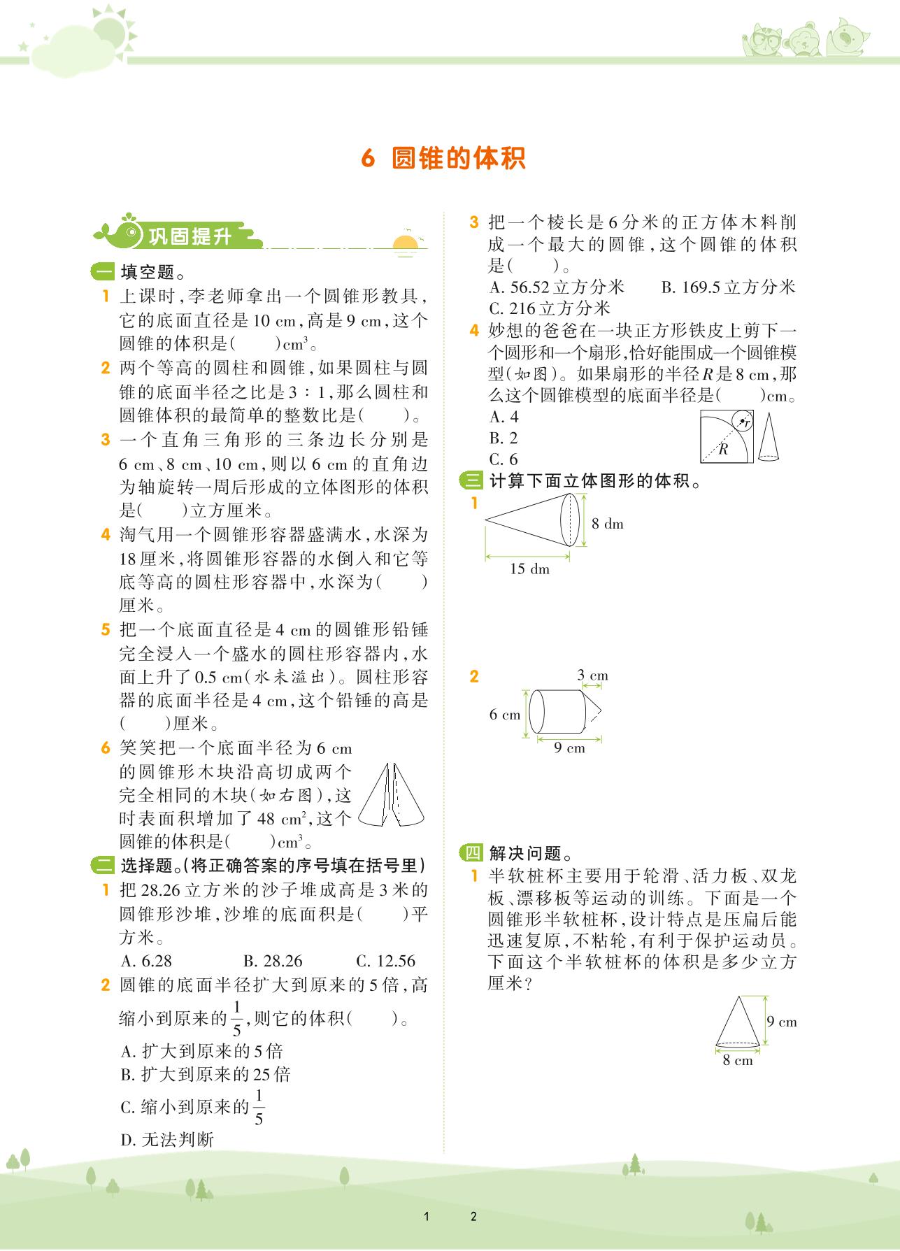 2021下册六年级数学北师版 第一单元 圆柱和圆锥——6 圆锥的体积