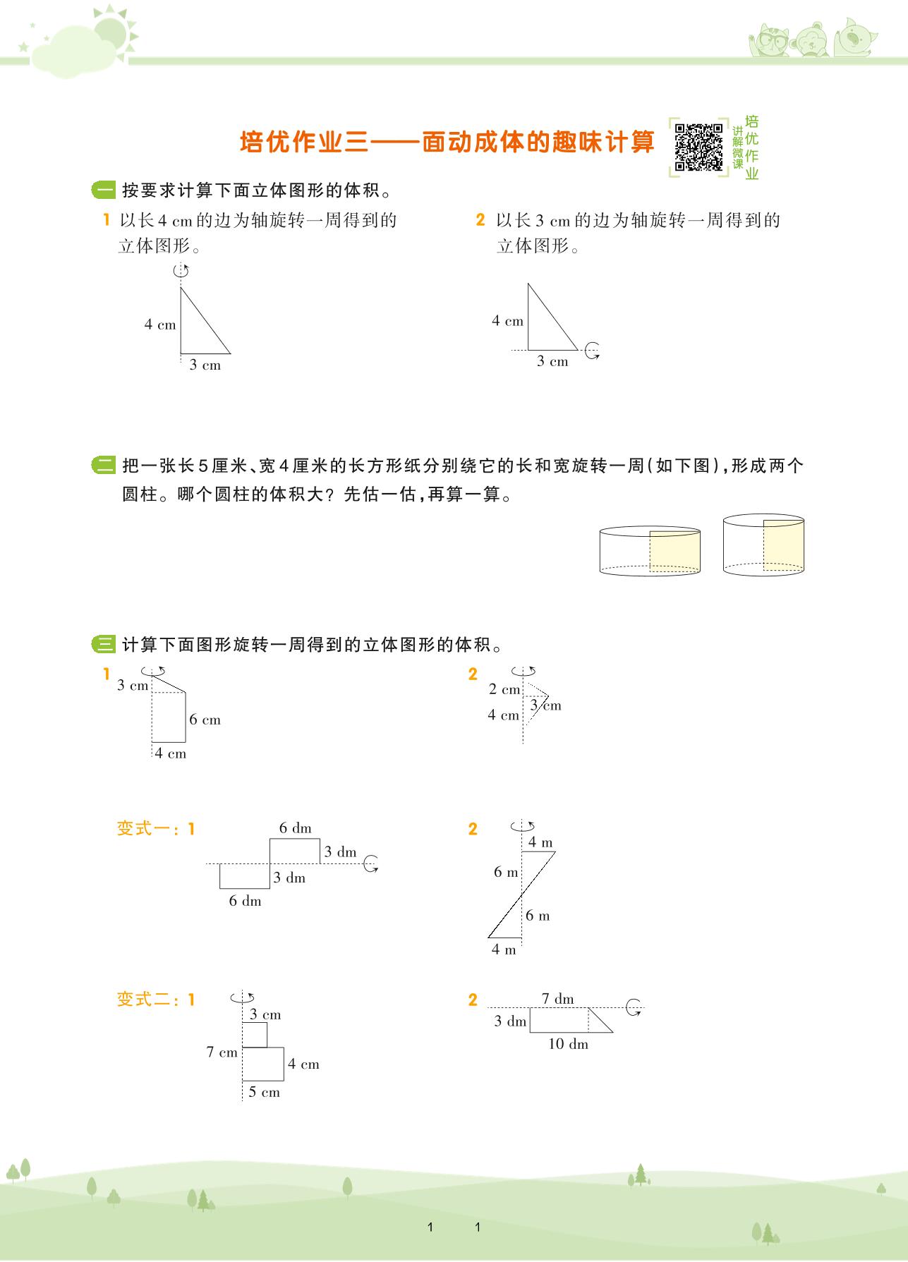 2021下册六年级数学北师版 第一单元 圆柱和圆锥——培优作业三 面动成体的趣味计算