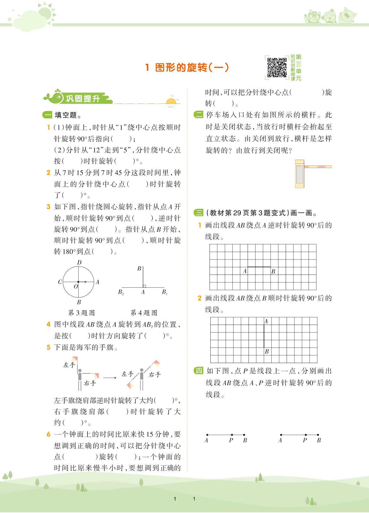 2021下册六年级数学北师版 第三单元 图形的运动——1 图形的旋转(一)