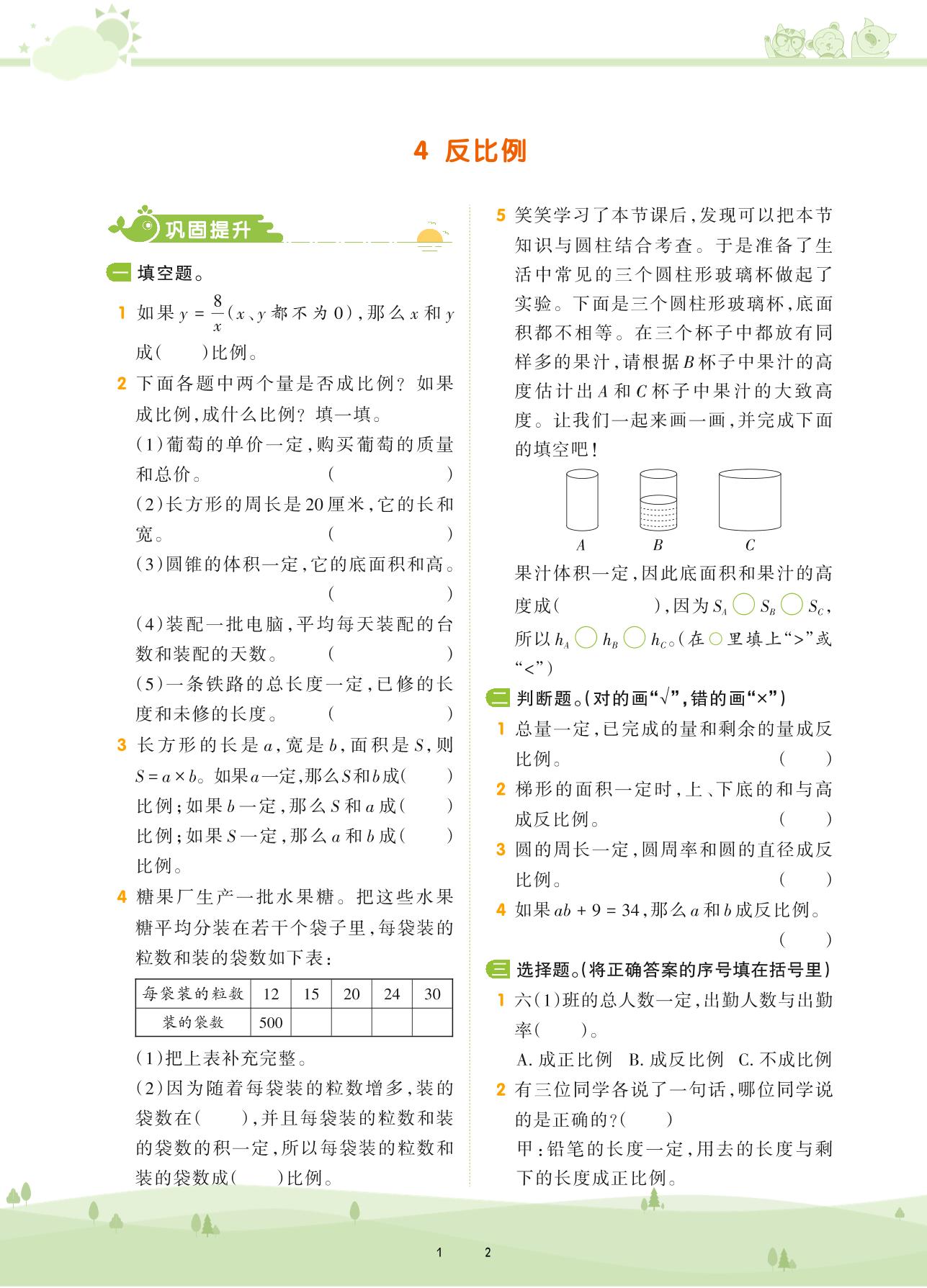 2021下册六年级数学北师版 第四单元 正比例与反比例——4 反比例