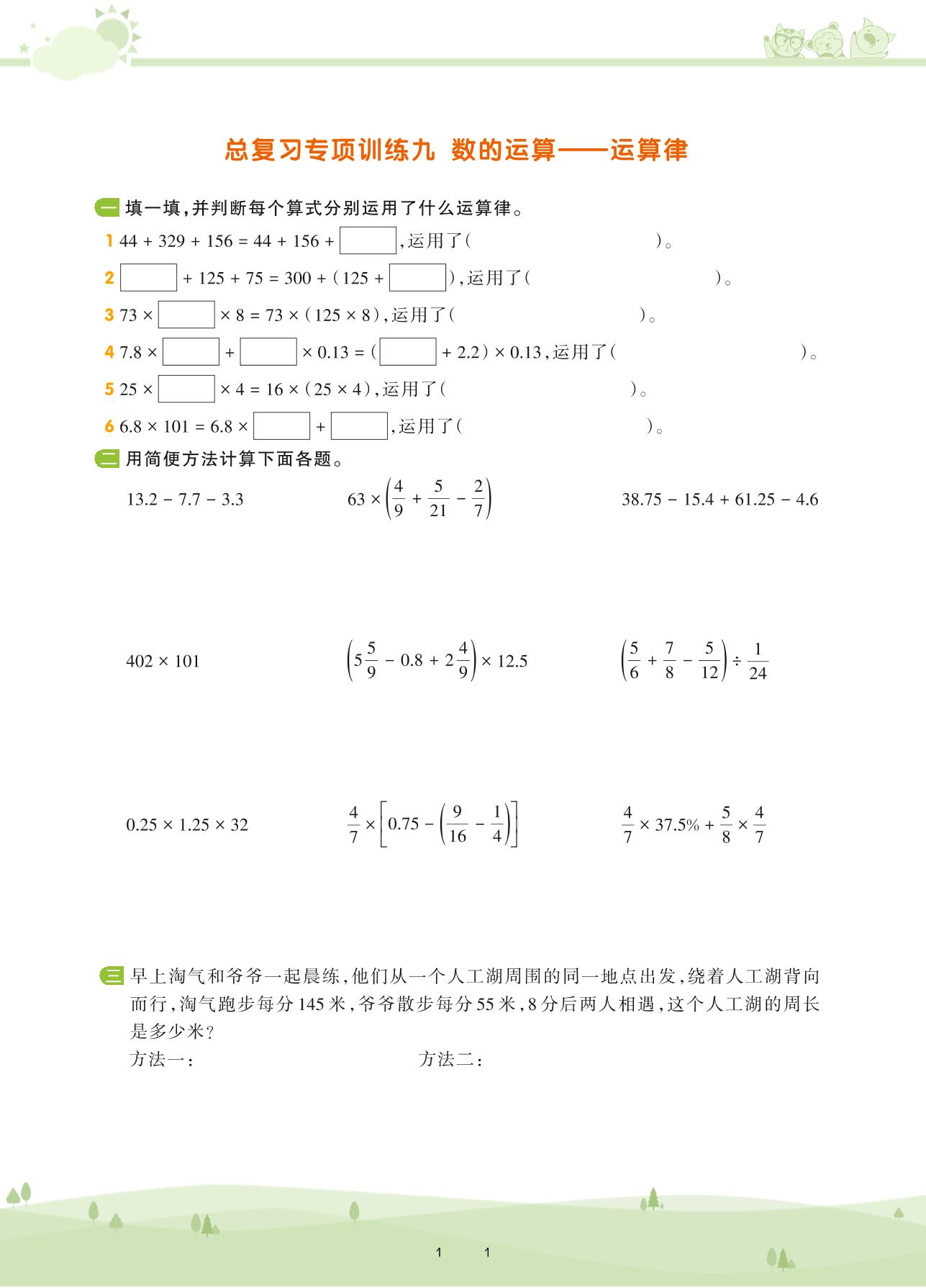 2021下册六年级数学北师版 总复习 数与代数——总复习专项训练九 数的运算 运算律