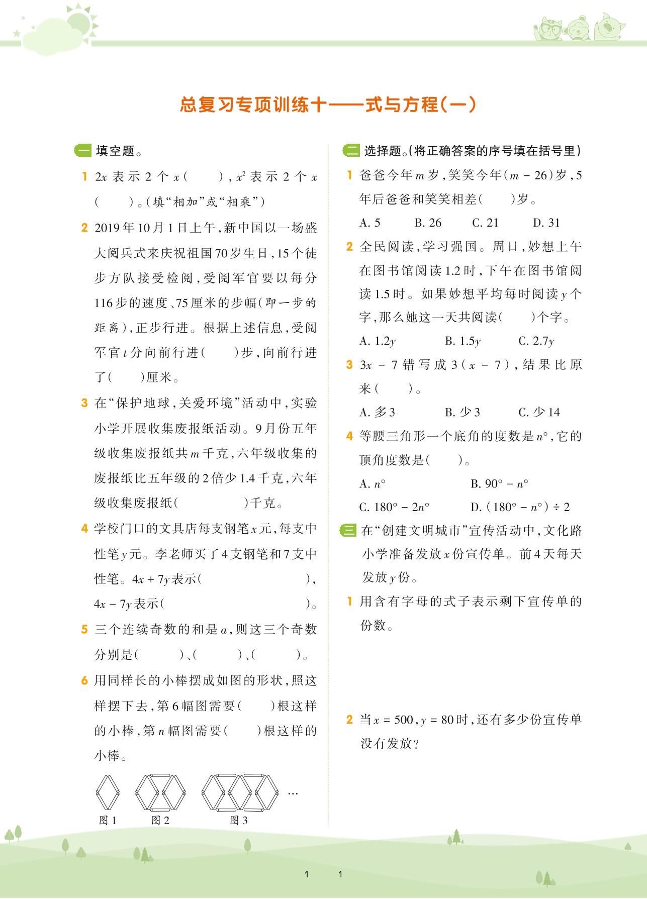 2021下册六年级数学北师版 总复习 数与代数——总复习专项训练十 式与方程(一)