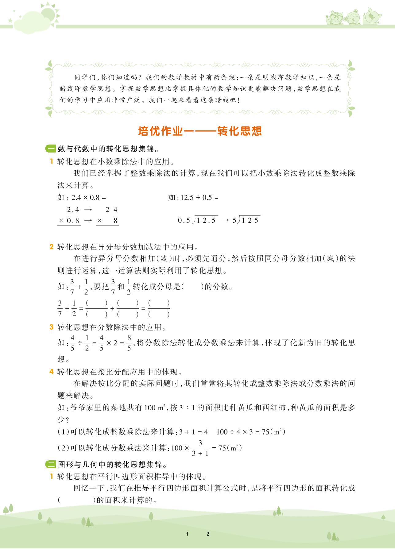 2021下册六年级数学北师版 总复习——培优作业一 转化思想