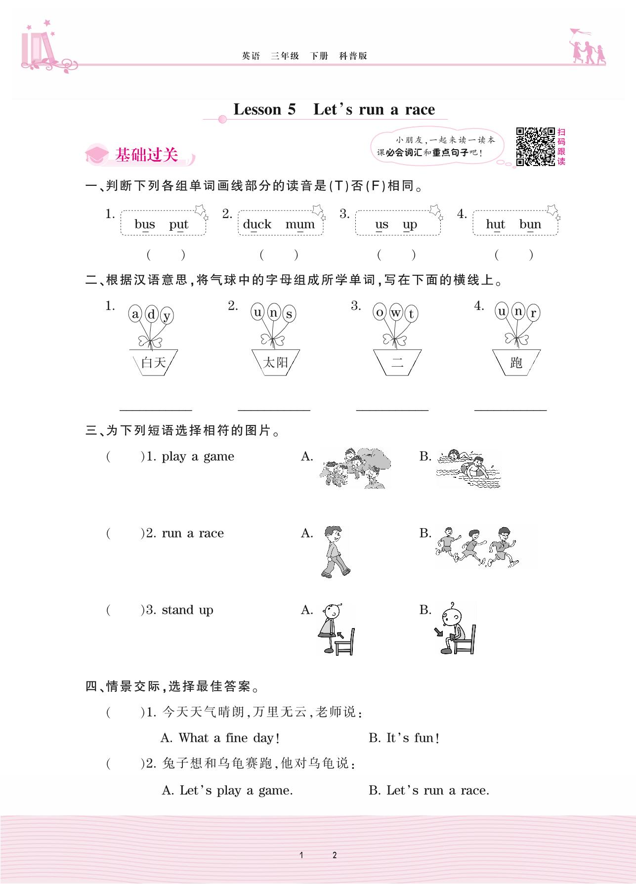 2021下册三年级英语科普版 Lesson 5 Let’s run a race